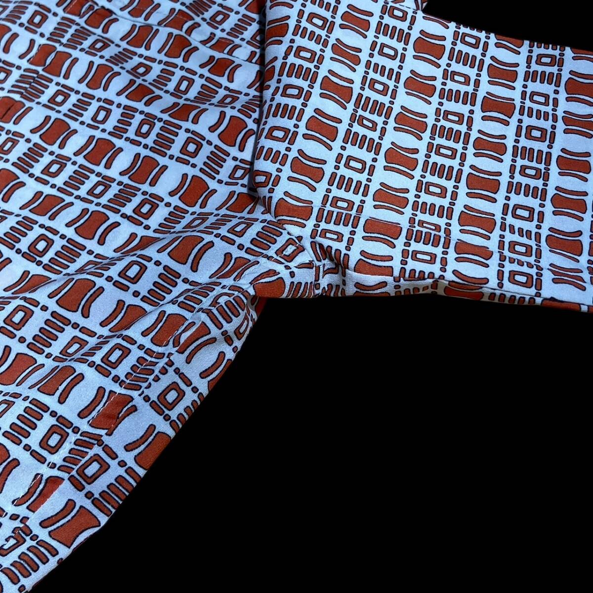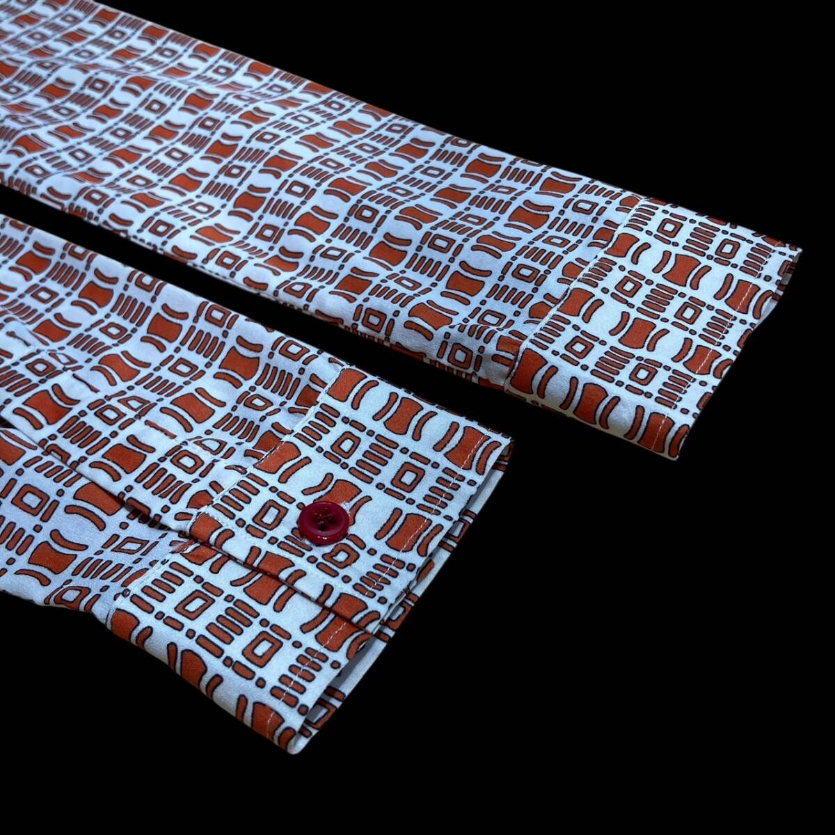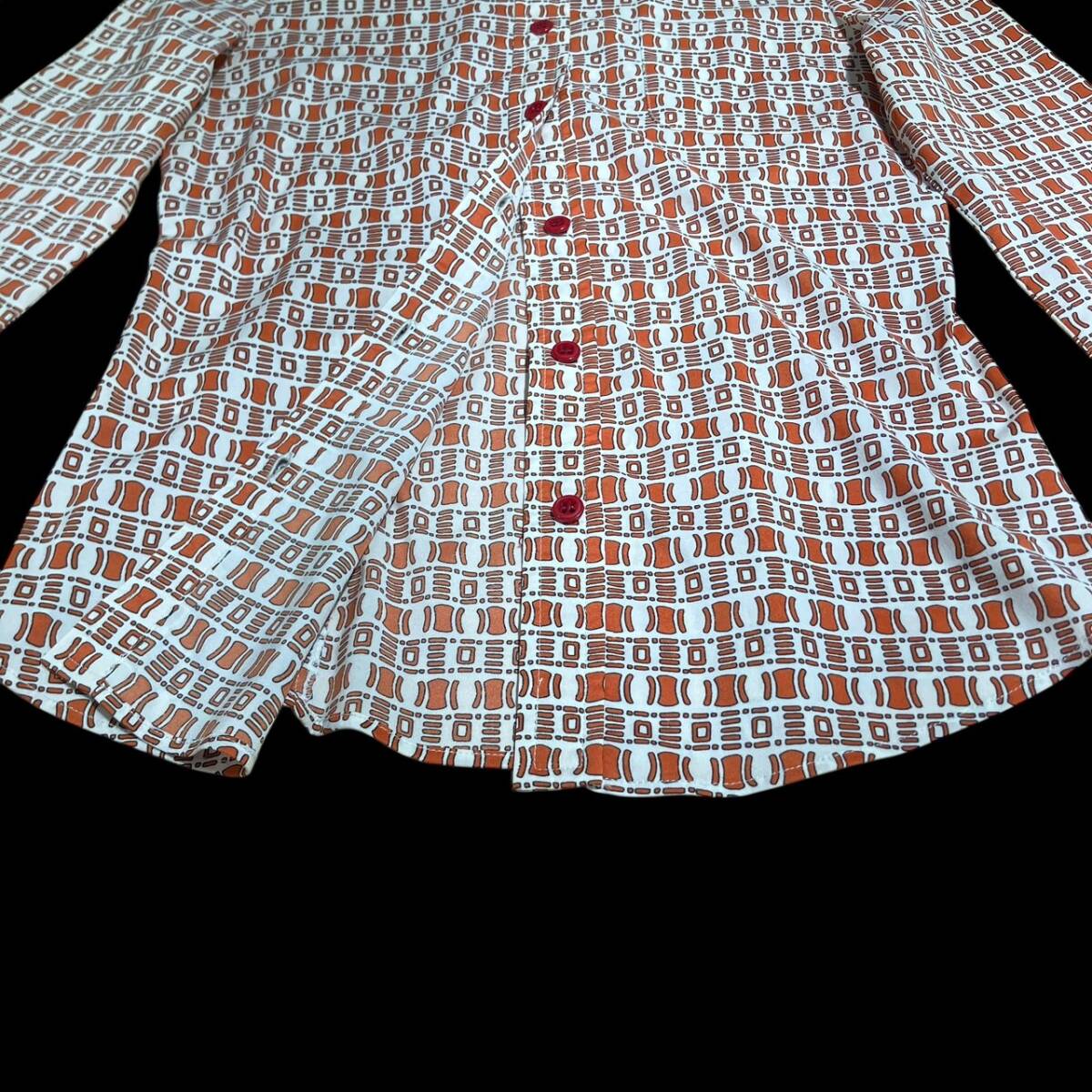| 〇送料無料 ミュウミュウ 総柄 長袖 シャツ スリム ポリエステル オレンジ系 レディース サイズ40 |