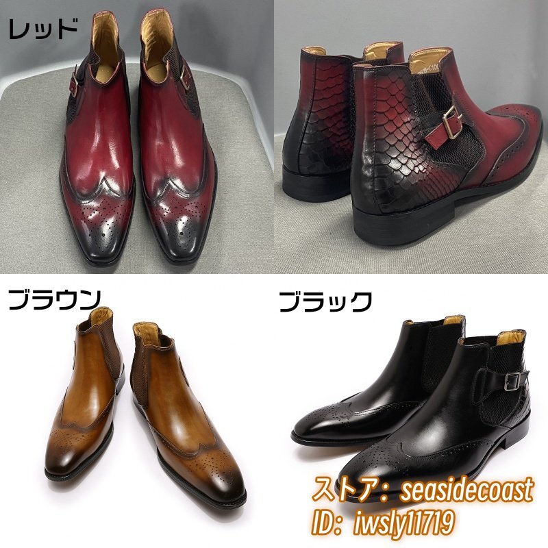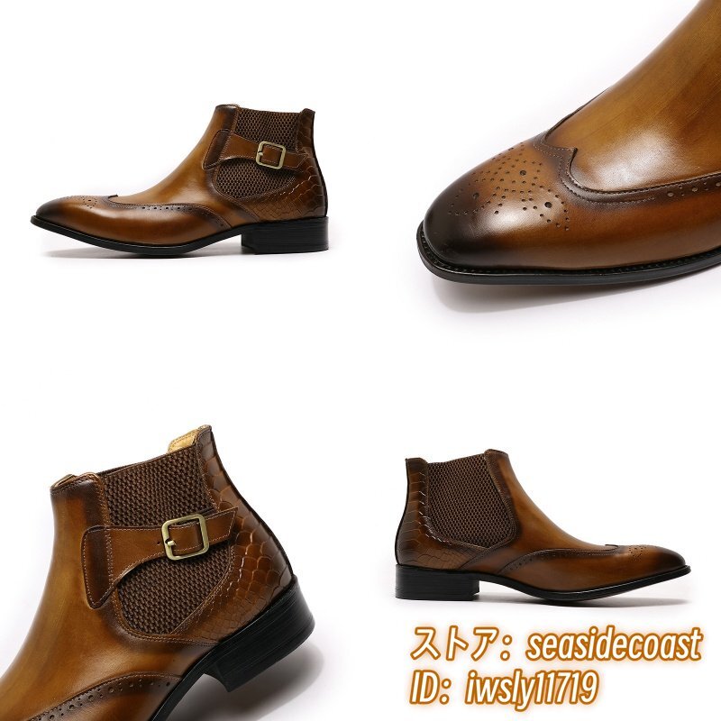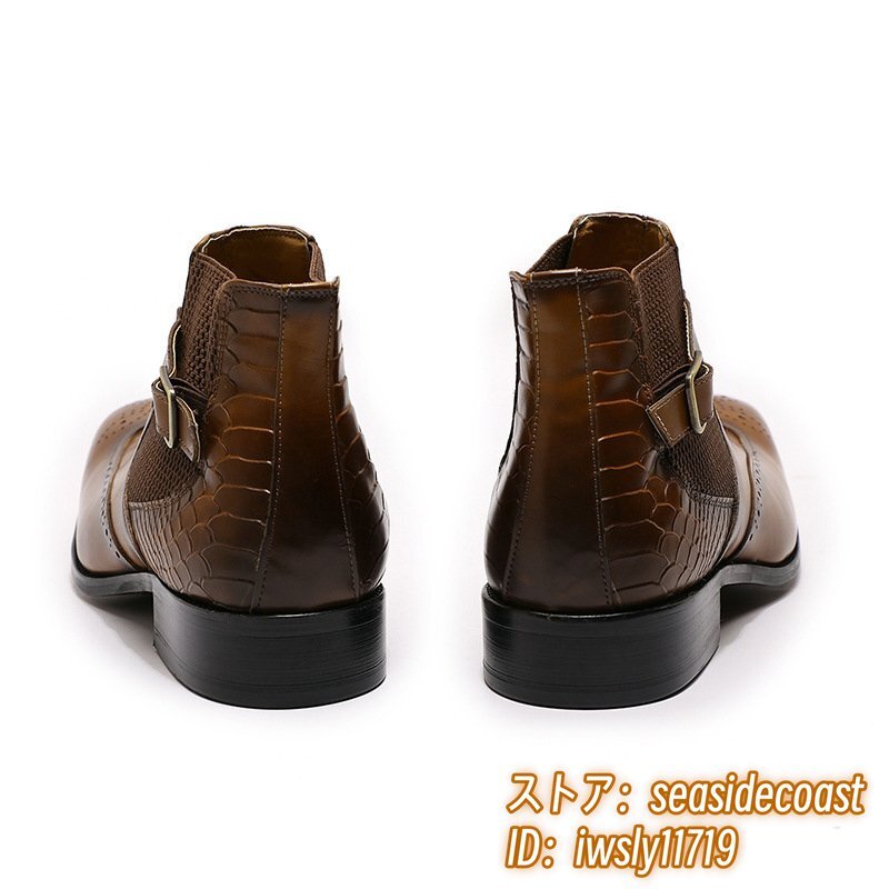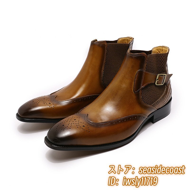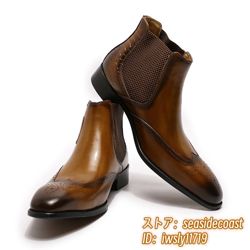 超希少*メンズブーツ 高級牛革 マーティンブーツ 職人手作り 彫り 本革 レザーブーツ 紳士靴 皮靴 ハイカット ビジネス ブラウン 25.0cm