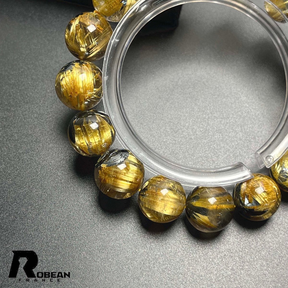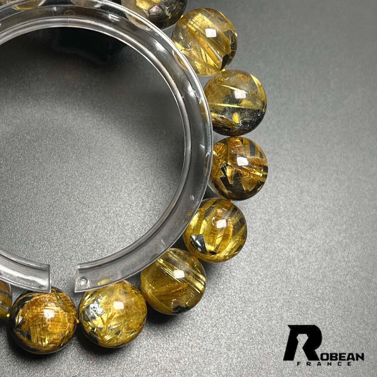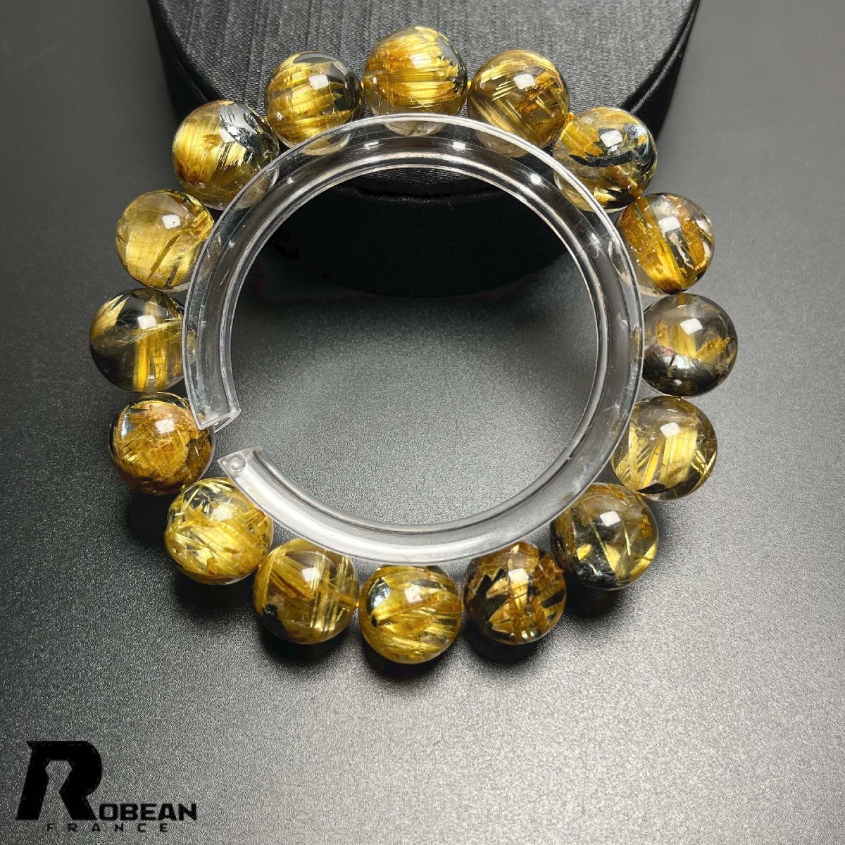 貴重EU製 定価154万円★ROBEAN・太陽花タイチンルチル★黄金針水晶 金運 開運 ゴールド ブレスレット パワーストーン 12.8-13.7mm K0527719