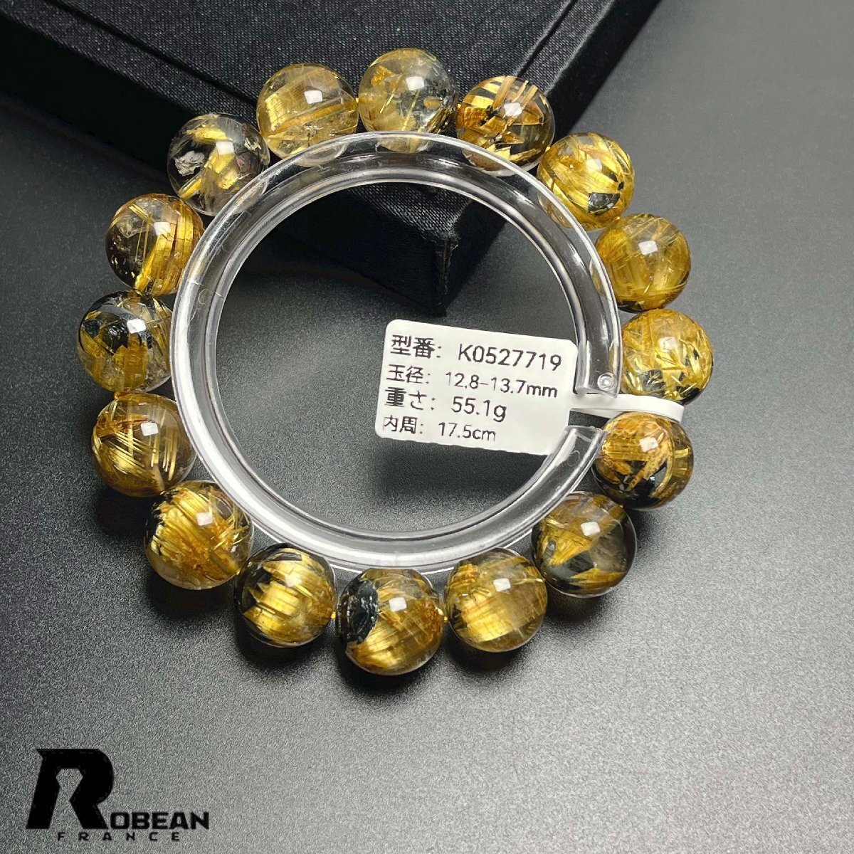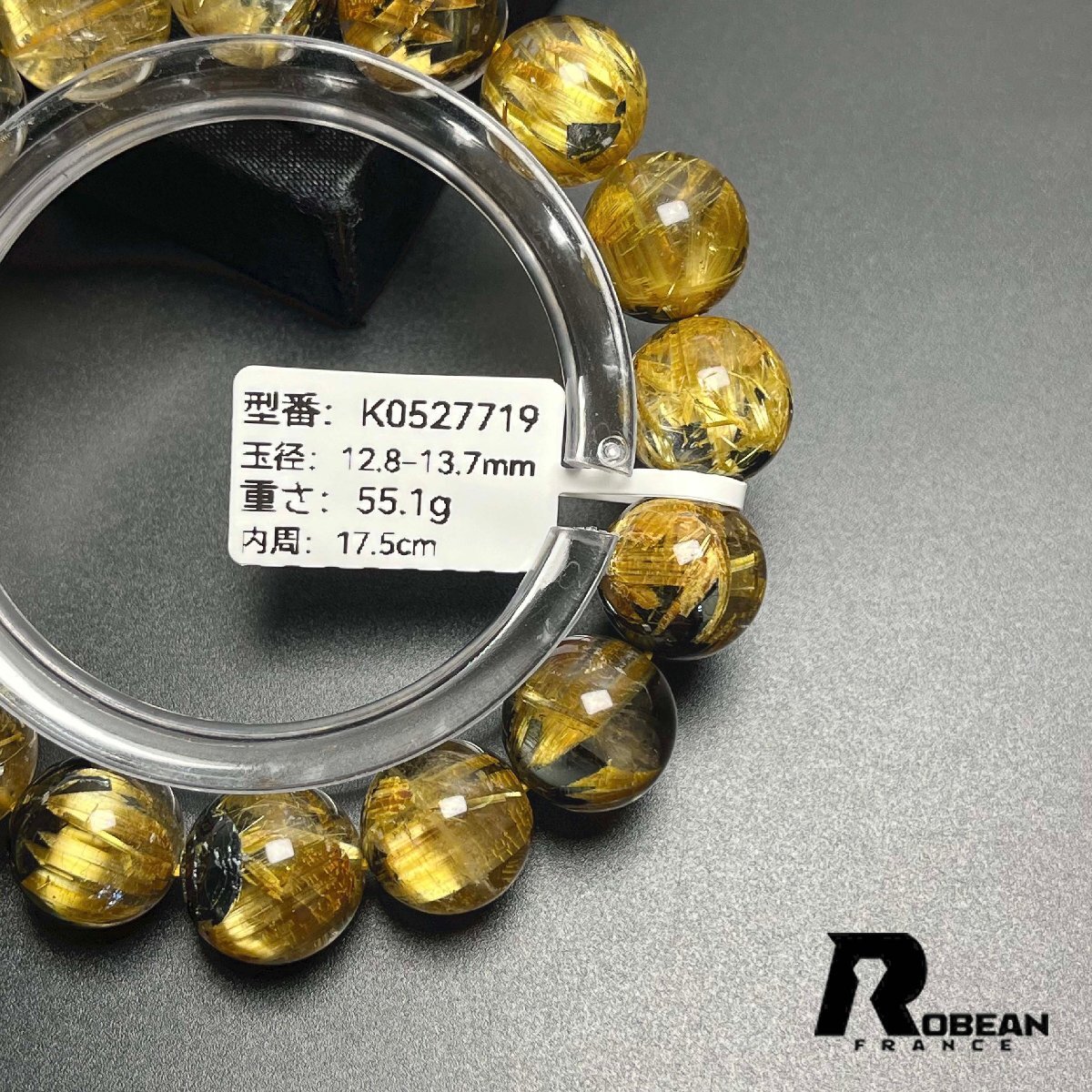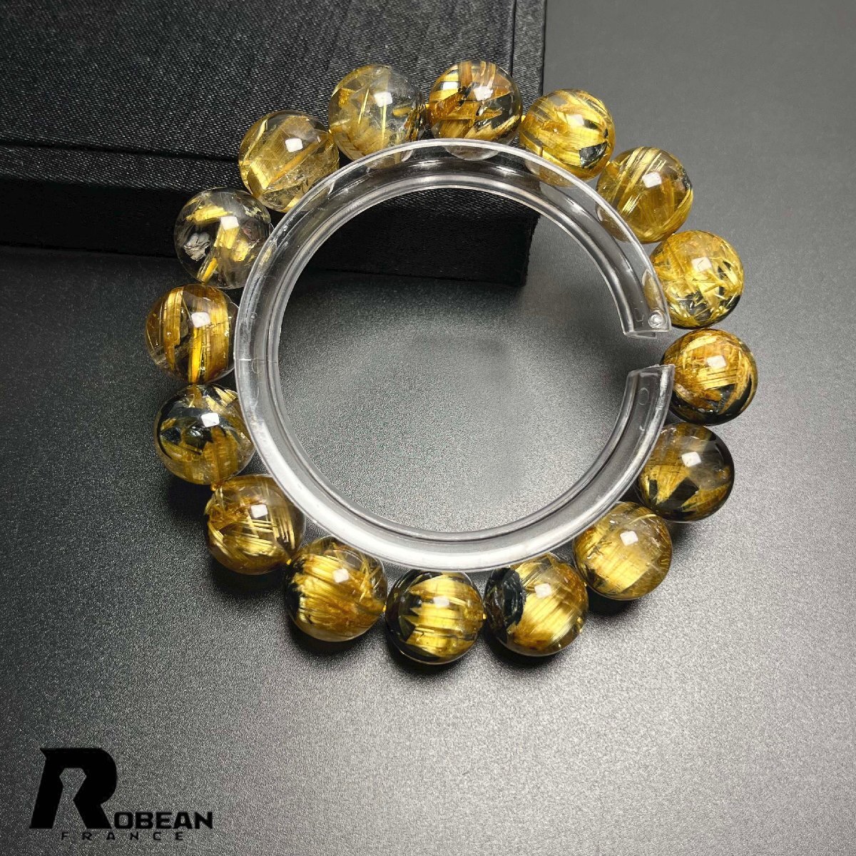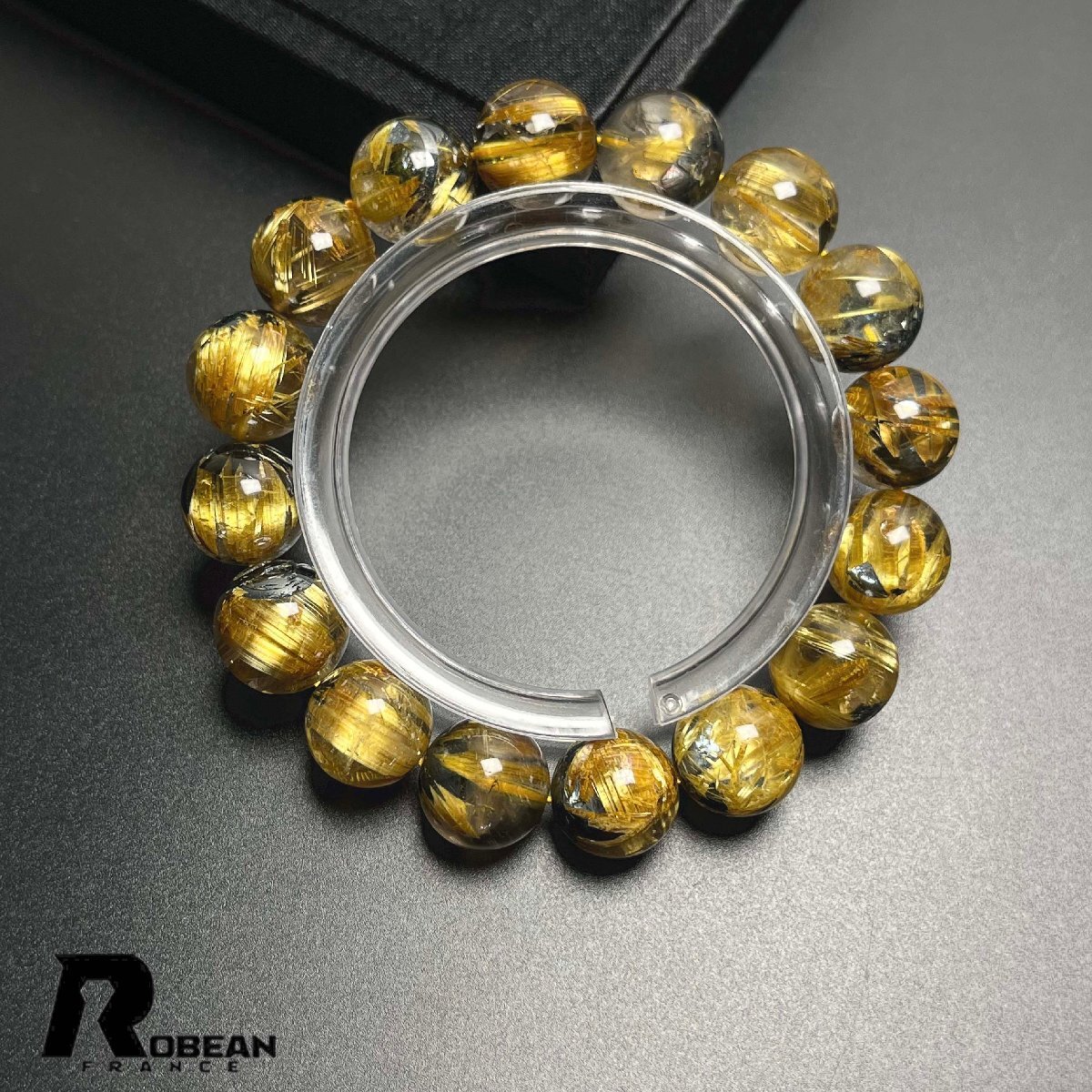 貴重EU製 定価154万円★ROBEAN・太陽花タイチンルチル★黄金針水晶 金運 開運 ゴールド ブレスレット パワーストーン 12.8-13.7mm K0527719