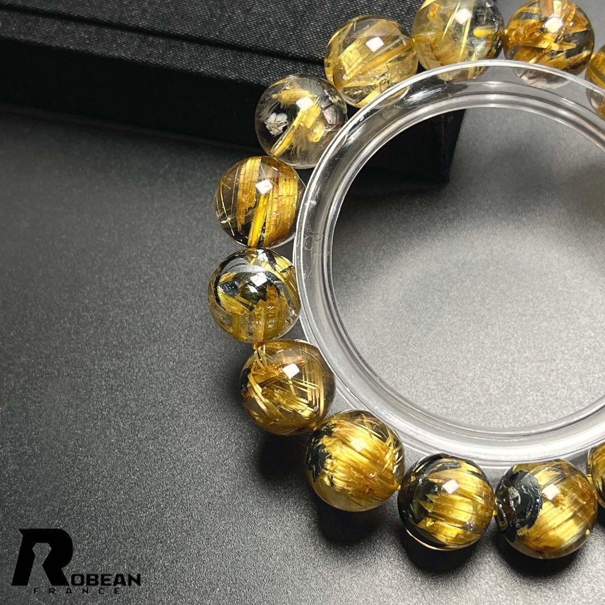 貴重 EU製 定価154万円★ROBEAN・太陽花タイチンルチル★黄金針水晶 金運 開運 ゴールド ブレスレット パワーストーン ギフト 12.8-13.7mm