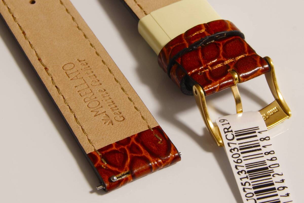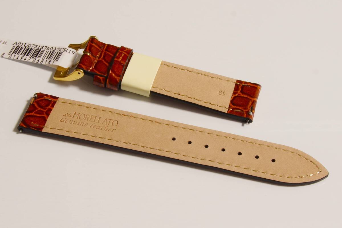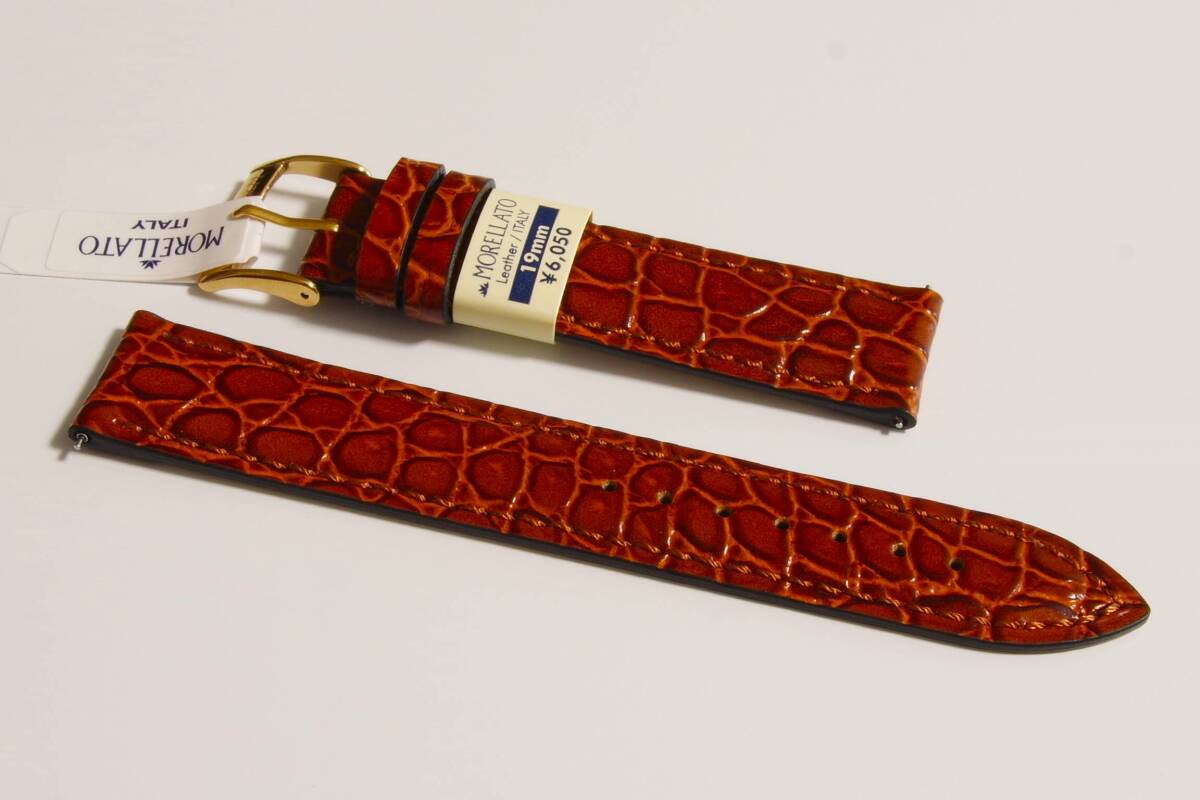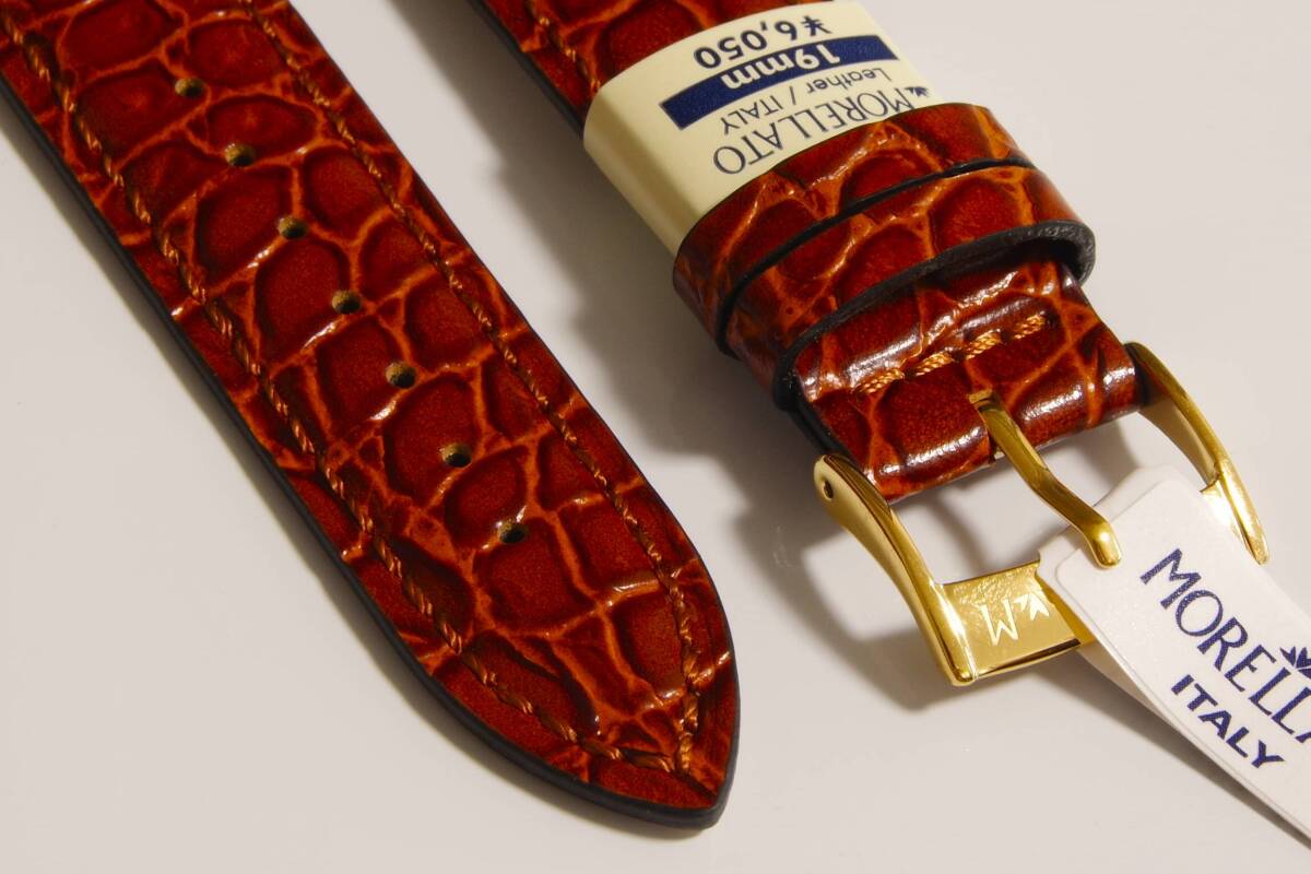 《送料サービス》ラグ幅 19mm カーフ(クロコダイル型押し)モレラート リバプール ブラウン クリッカー仕様