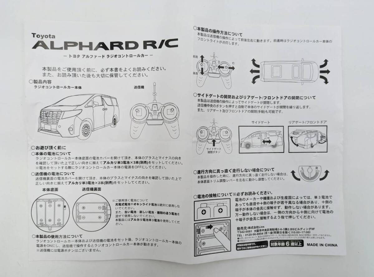 【1円スタート】 TOYOTA Toyotaトヨタ アルファード ALPHARD R/C ラジコン リモコン操作 電動スライドドア 1/24スケール 通電確認済み