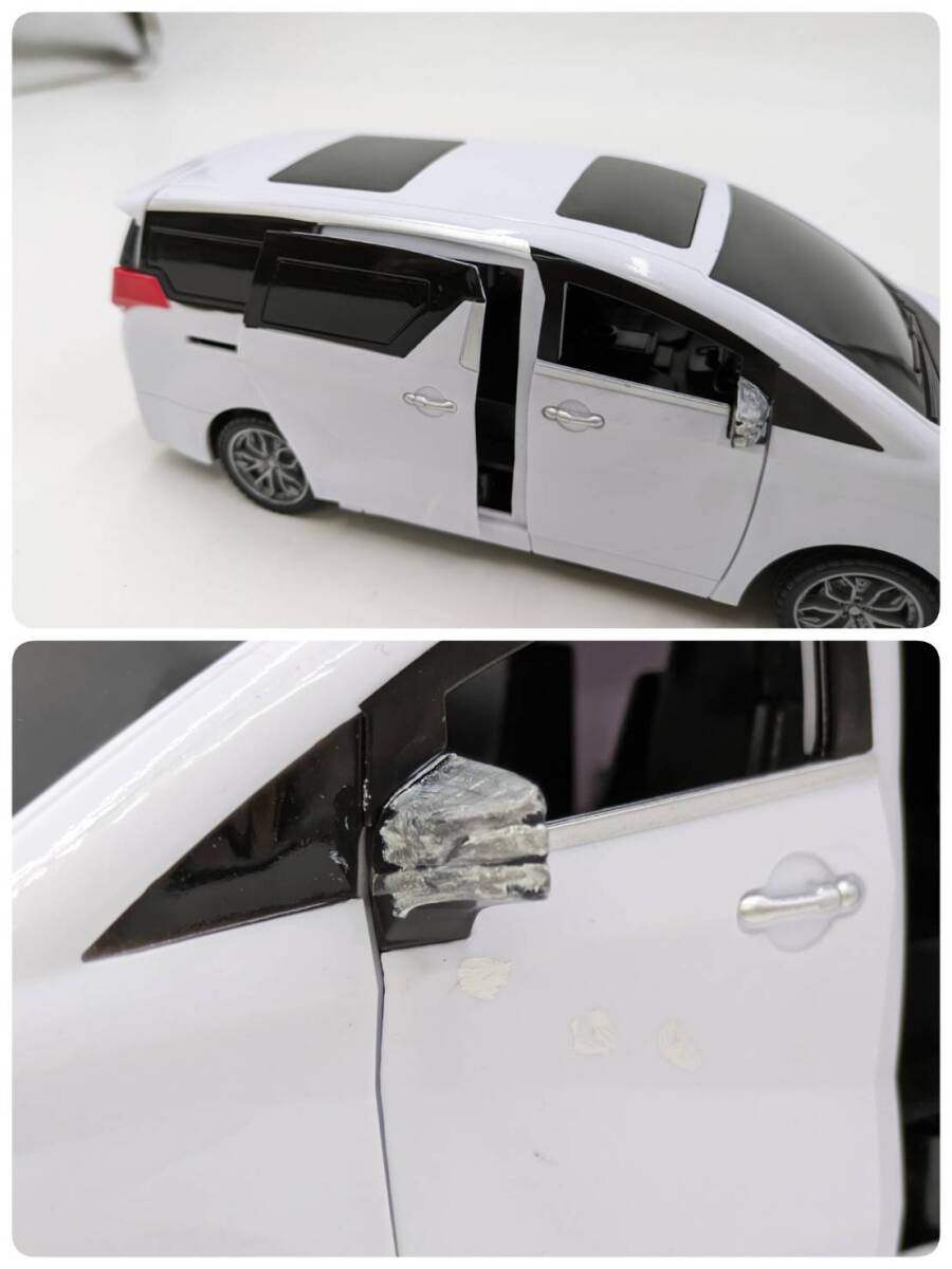 トヨタアルファードのラジコンカーになります。中古品のためキズや汚れ等がみられます。サイドミラーに塗装した跡がみられます。スライドドアの固定が緩いのか本体を傾けると多少開きます。通電確認はしておりますが、細かい動作確認は行っておりません。そのため、ジャンク品を視野に入れて入札をご検討ください。こちら現状品でのお渡しになります。