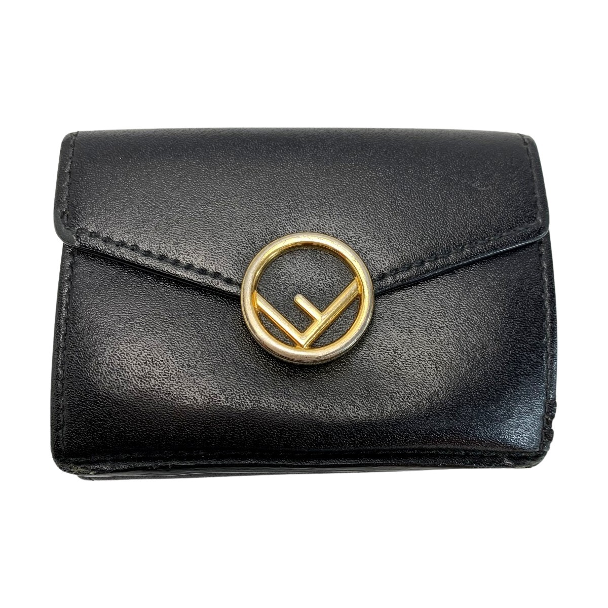 【商品名】中古 FENDI フェンディ エフイズコンパクト レザー ブラック 3つ折り財布 やや傷や汚れあり