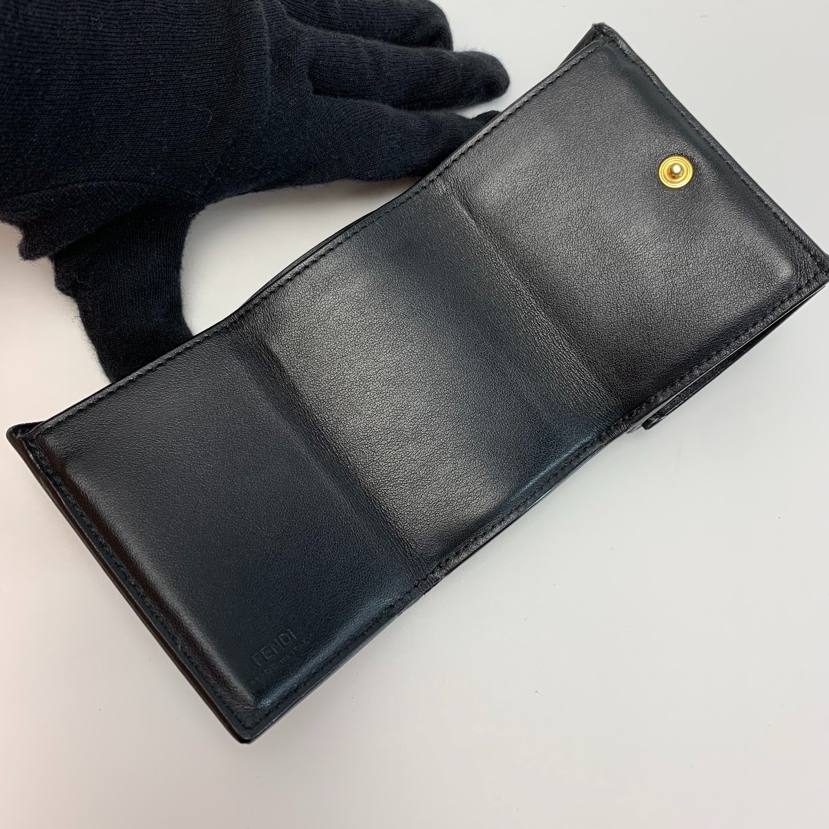 ☆☆ FENDI フェンディ エフイズコンパクト レザー ブラック 3つ折り財布 やや傷や汚れあり