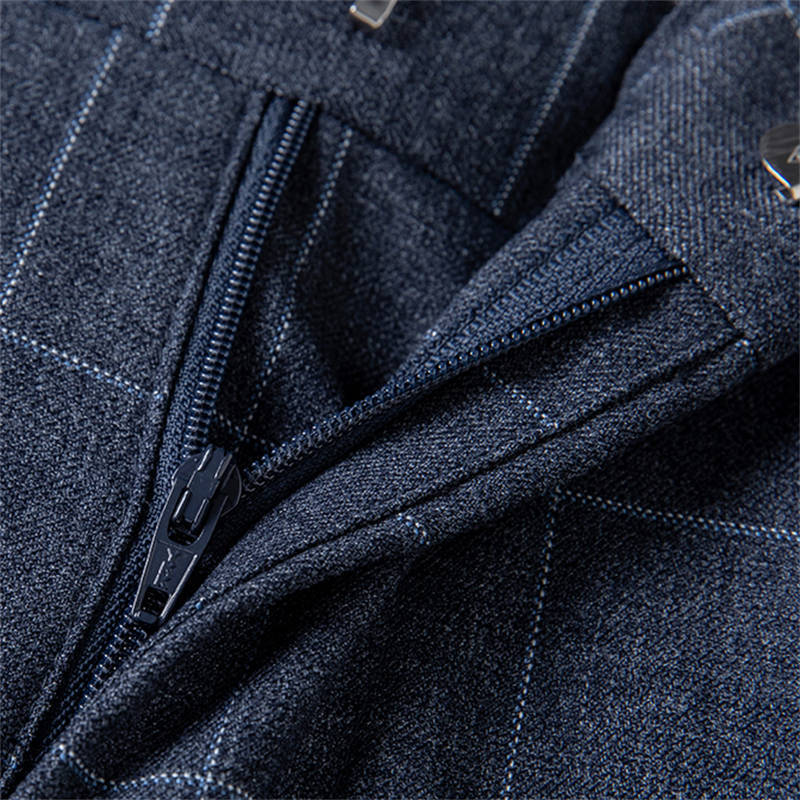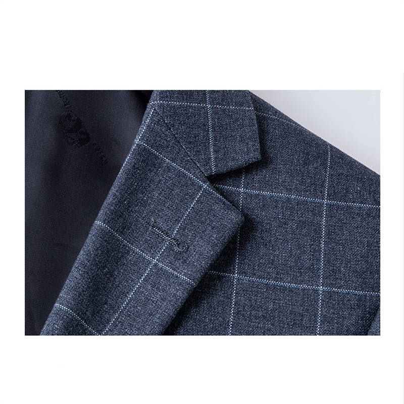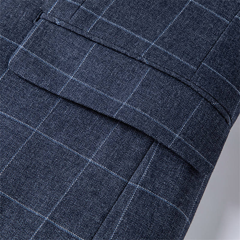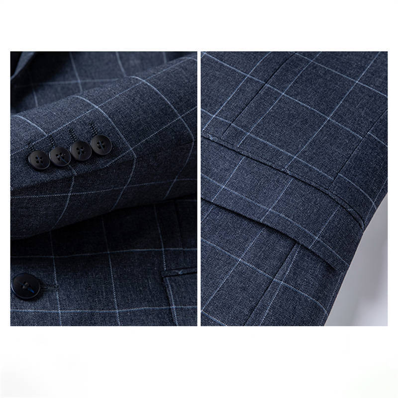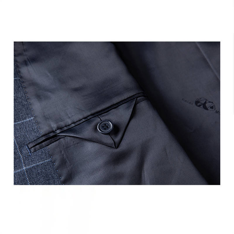 A904-M紺 スーツ 3ピーススーツ ウール混 チェック柄 メンズ 新品 セットアップ 防シワ 紳士服 ビジネス ベスト付き ジャケット パンツ