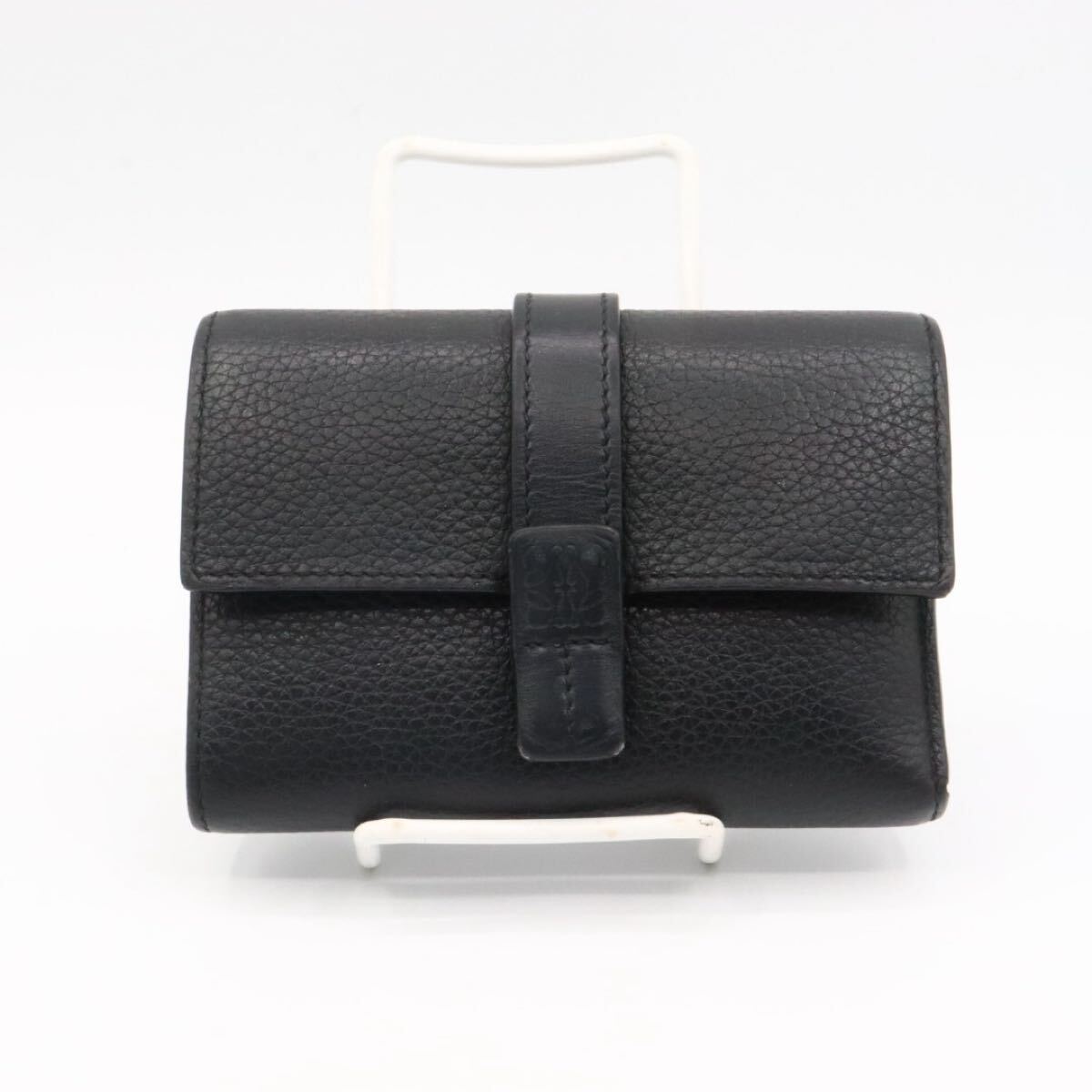 品名 ロエベ アナグラム レザー コンパクト ウォレット 折り財布 ブラック シルバー金具