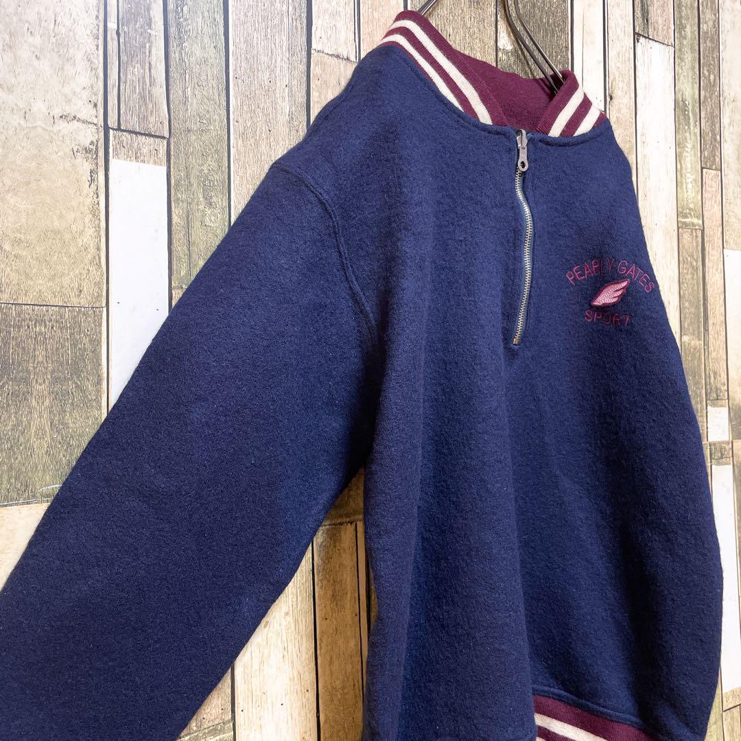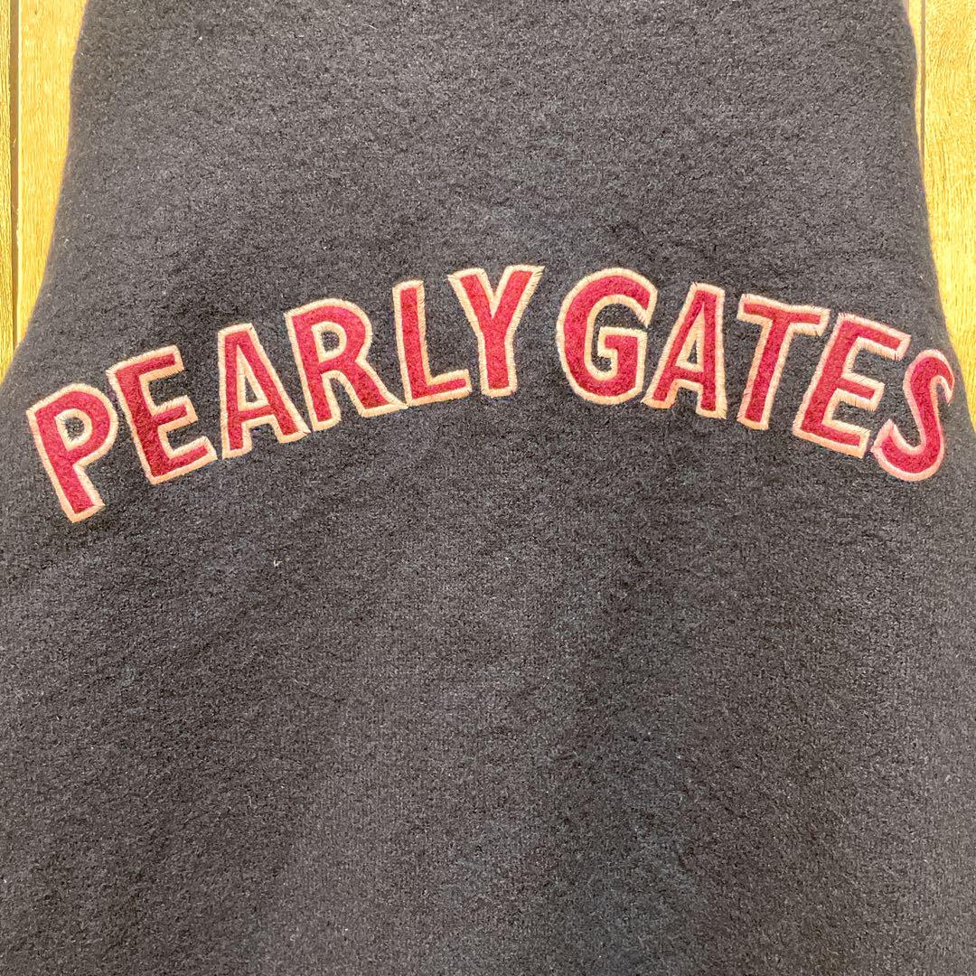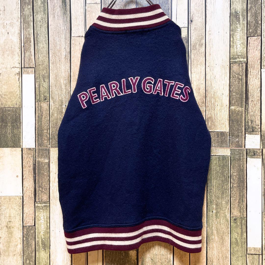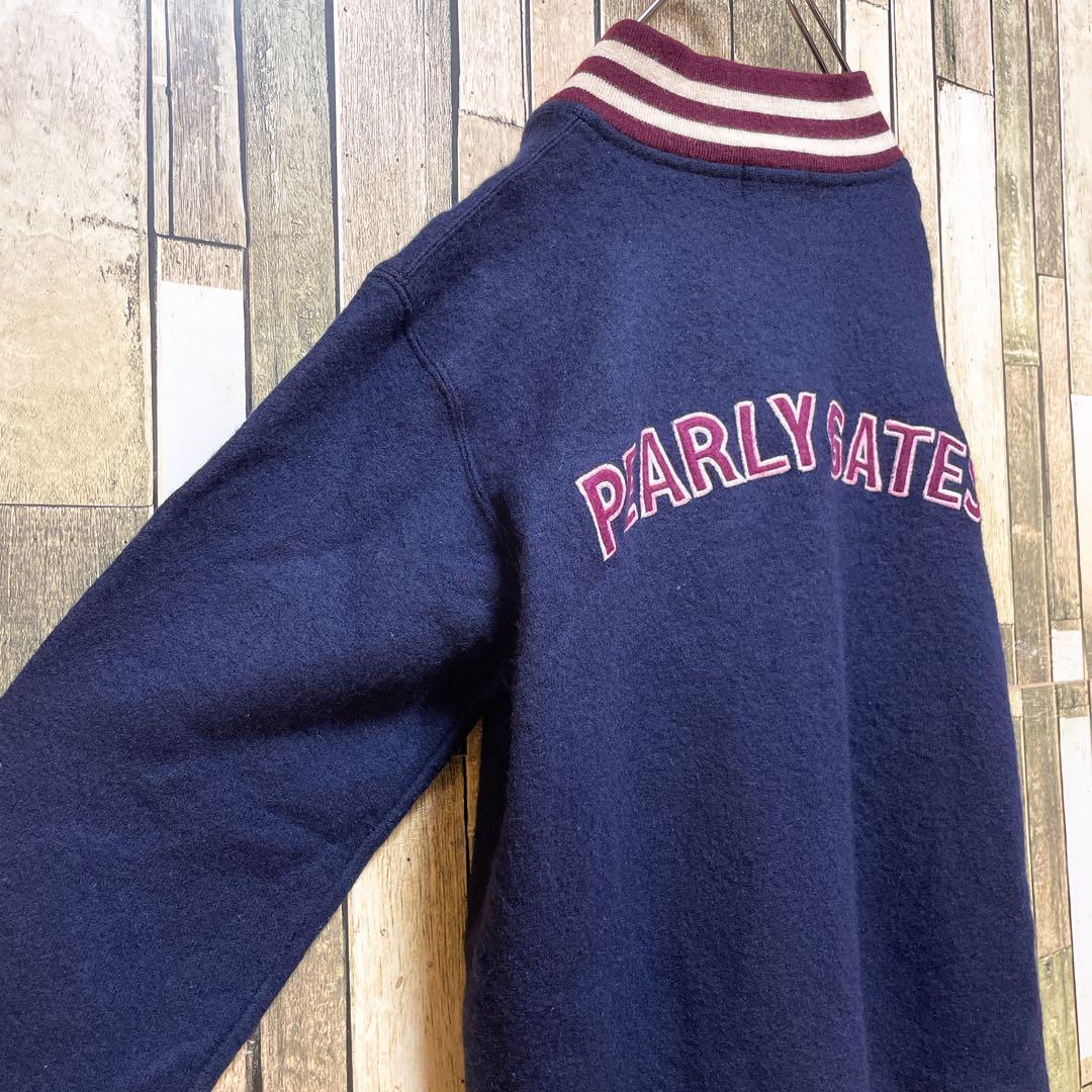 《激レア》パーリーゲイツ PEARLY GATES 紺☆スタジャン L 刺繍ロゴ ビッグロゴ ボーダー柄 ハーフジップ ririジッパー ネイビー h166