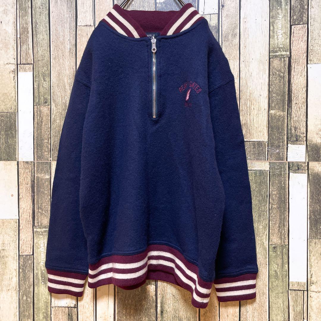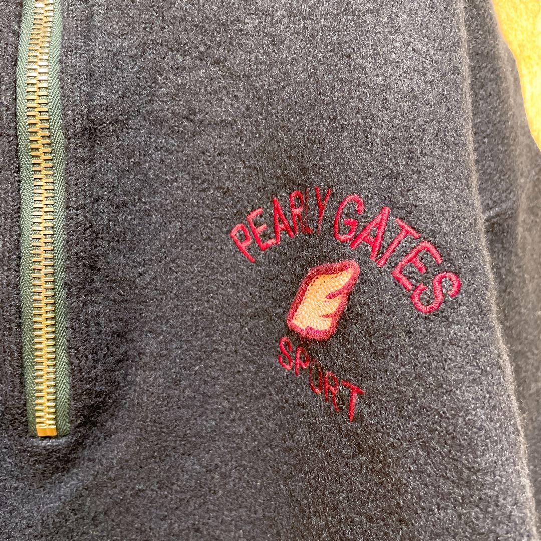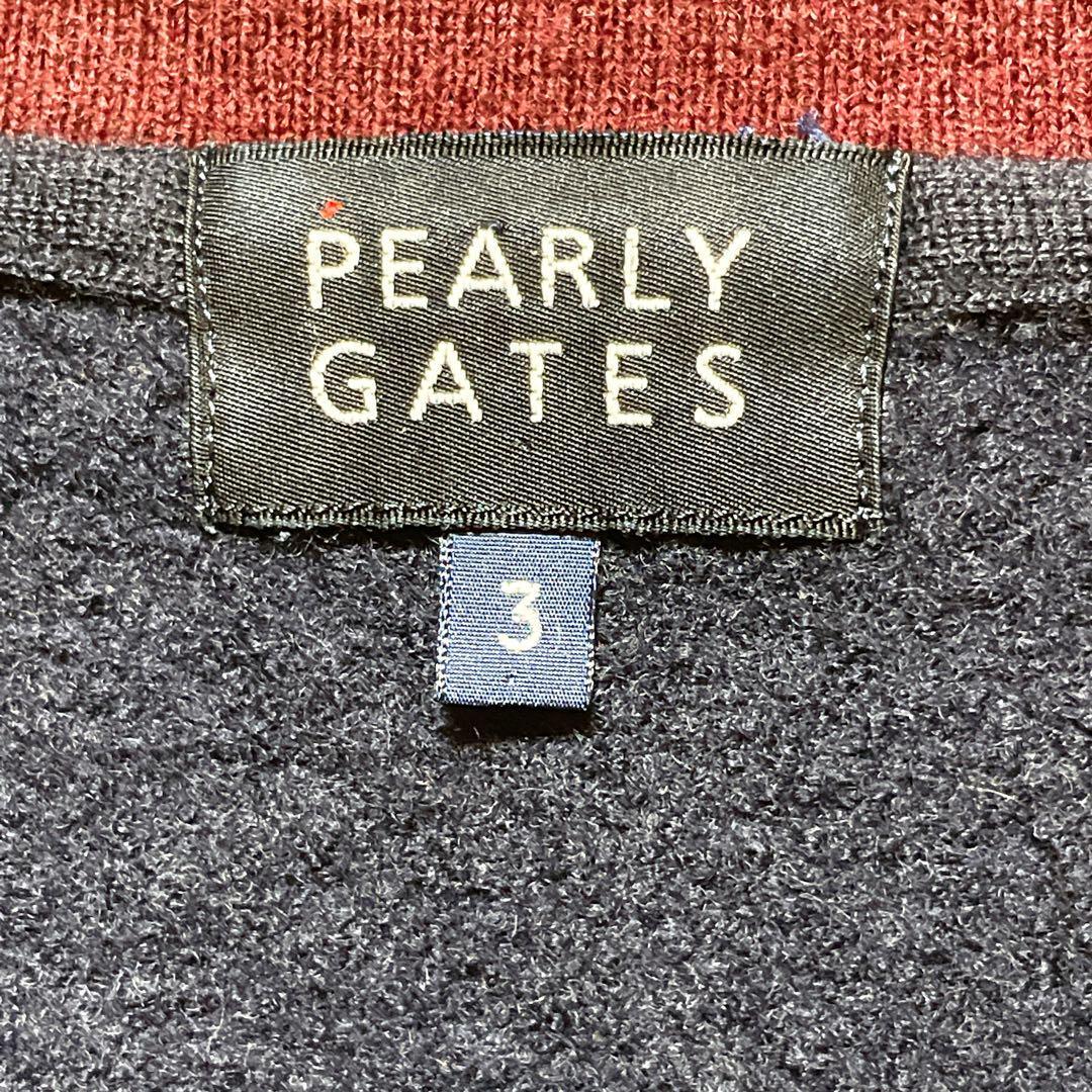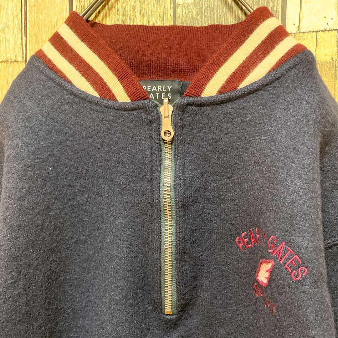 《激レア》パーリーゲイツ PEARLY GATES 紺☆スタジャン L 刺繍ロゴ ビッグロゴ ボーダー柄 ハーフジップ ririジッパー ネイビー h166