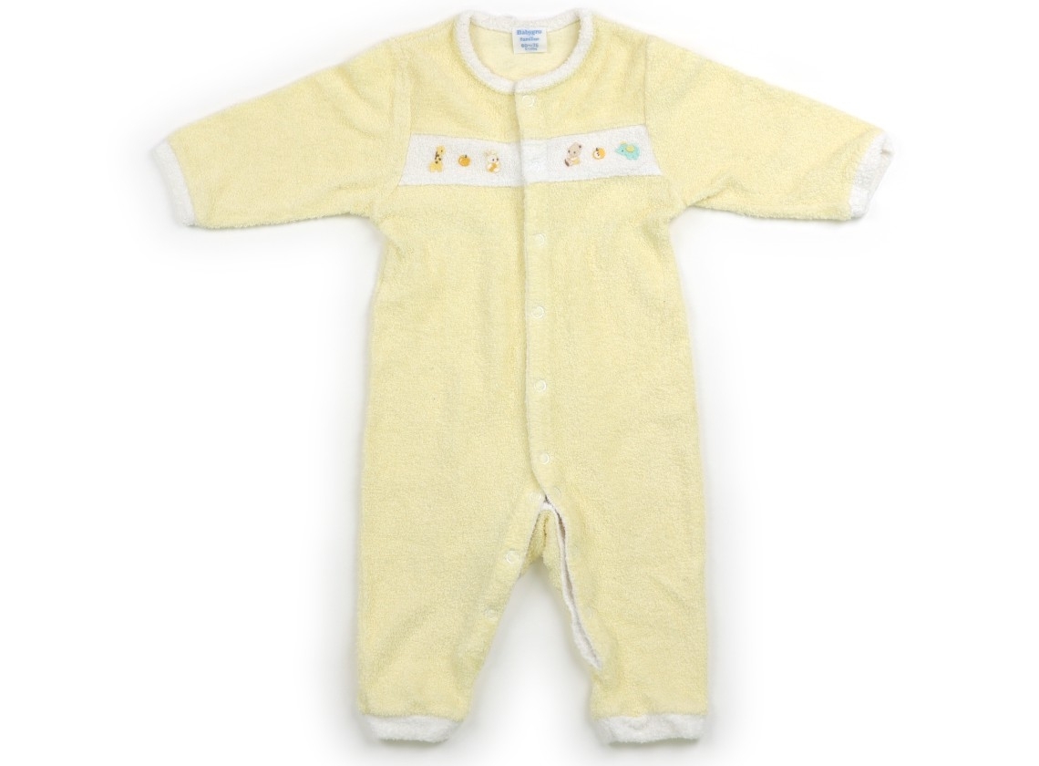 babygroです。実際のサイズ表記は60-75です。綿・ナイロンのパイル地。洗いざらし感があり、毛玉が少しあります。両袖口薄汚れています。全体的に色褪せもありますが、まだお使い頂けそうです。