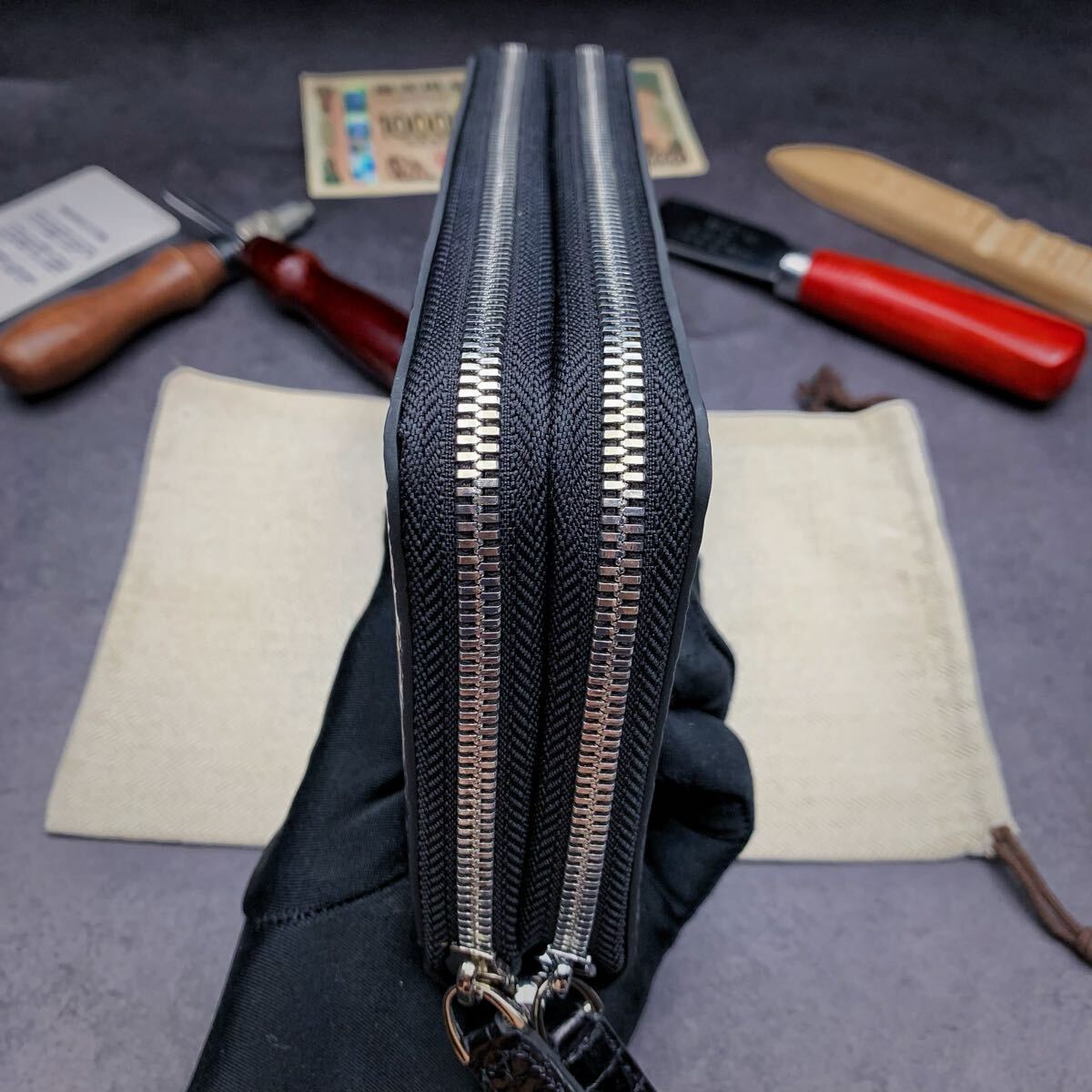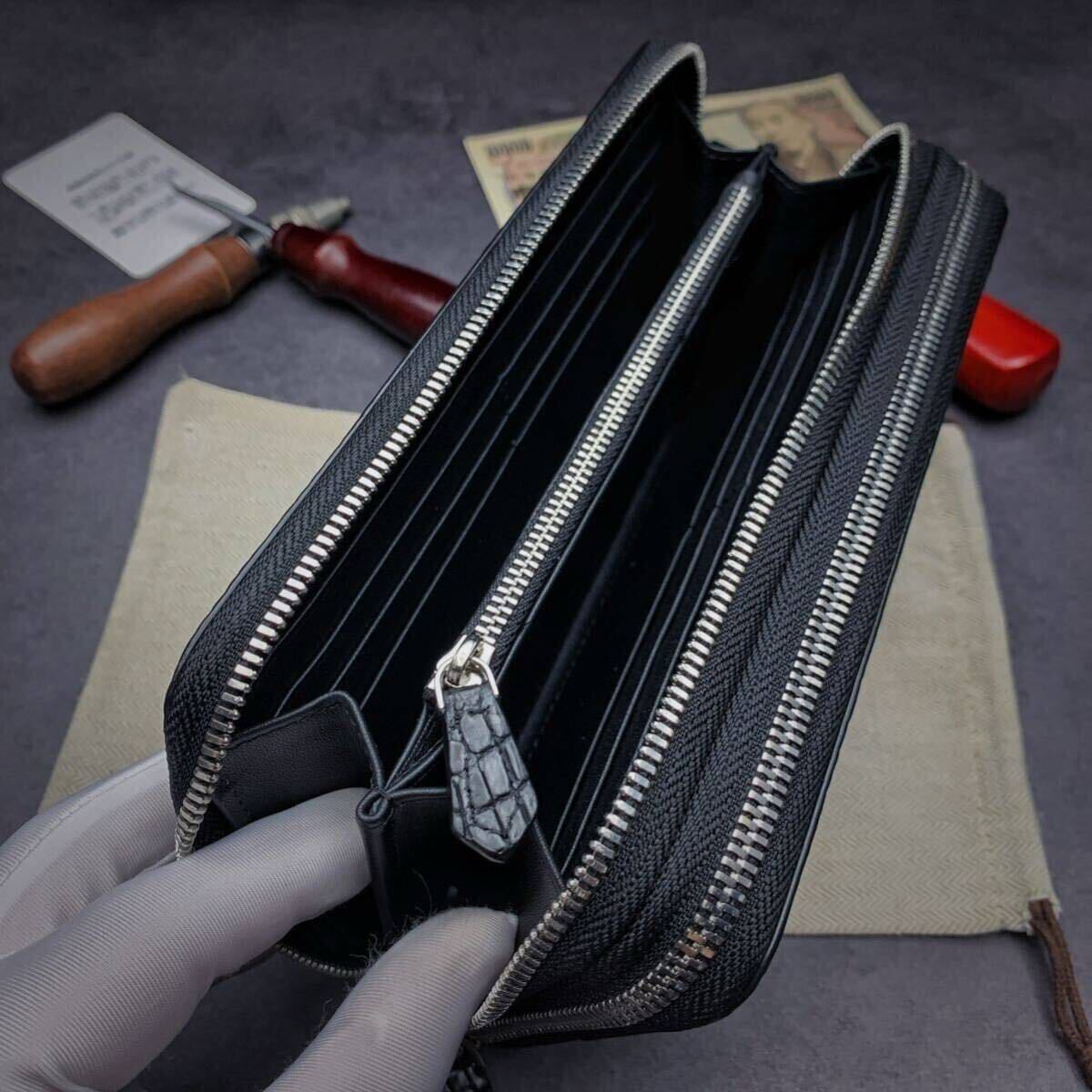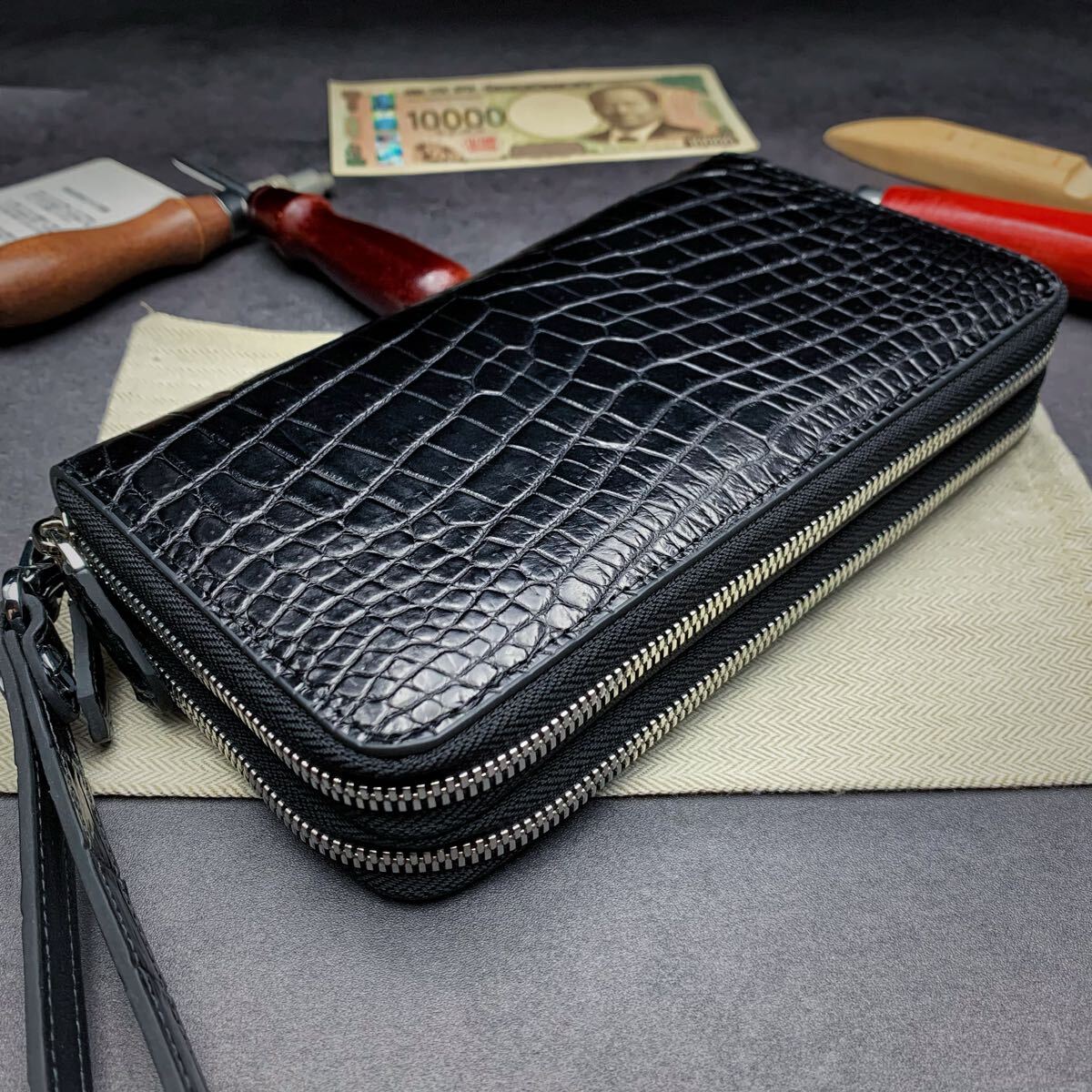 /センターカット/ダブルファスナー/本ワニ革/大容量