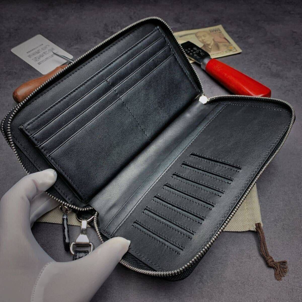 ハンドメイドで作る一枚革のクロコダイルラウンドファスナー長財布、鱗のラインがとても立体的で強く印象づけてくれています。内装には牛革を使うことで、高級感と清潔感が与えてくれます。