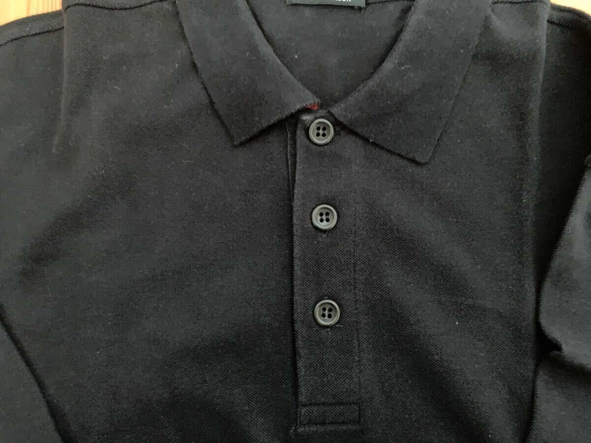 シンプルなデザインのブラック長袖ポロシャツ、コットン素材で快適な着心地。
