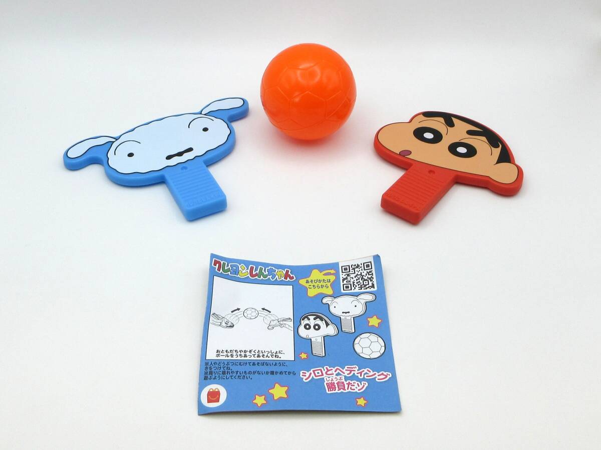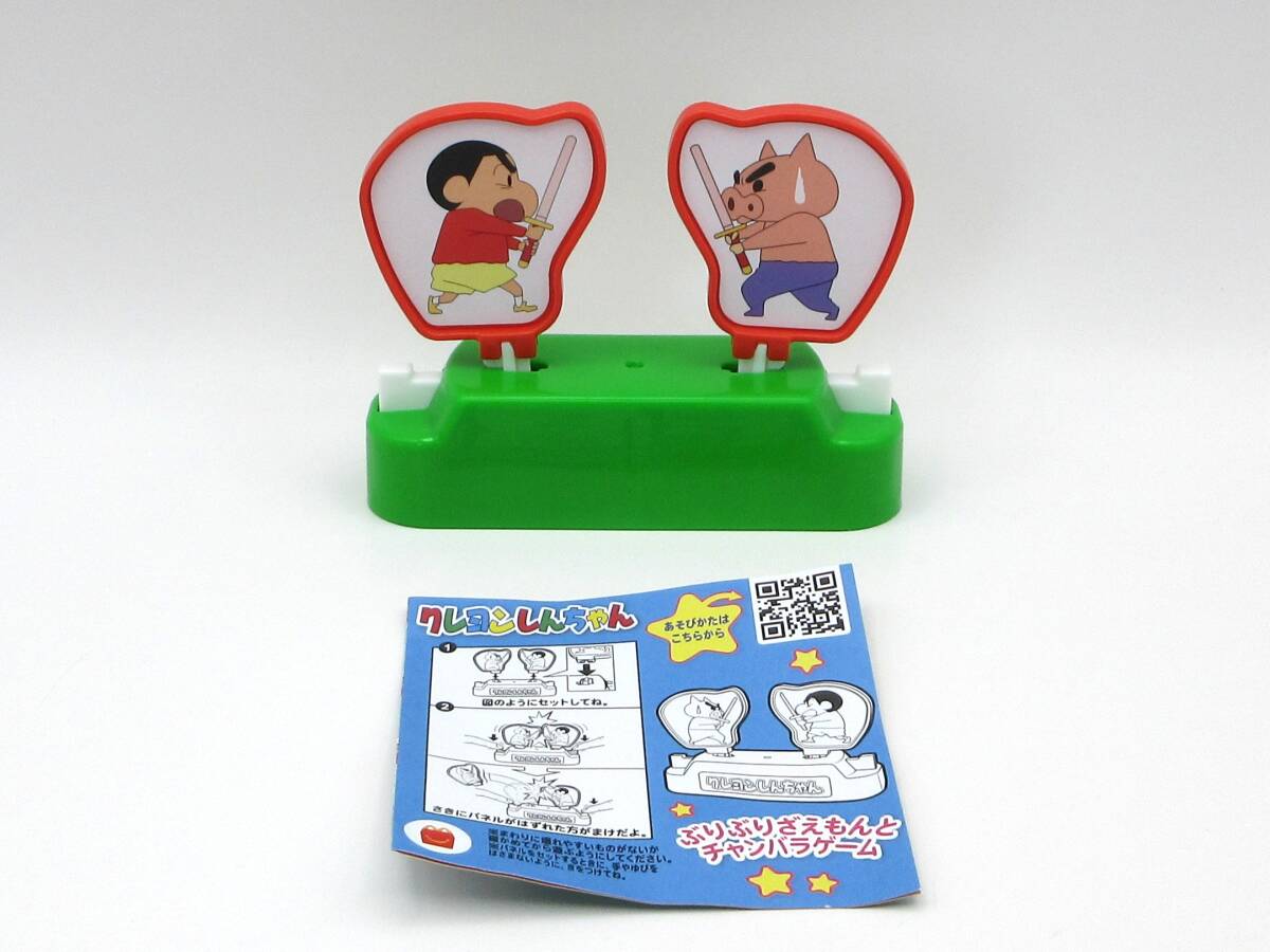 ハッピーセット クレヨンしんちゃん おもちゃ 3種  シロとヘディング勝負 ぶりぶりざえもんとチャンバラゲーム チョコビのまと入れ遊び