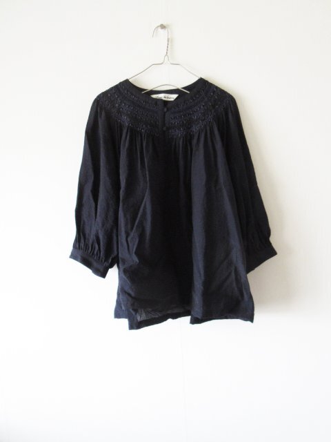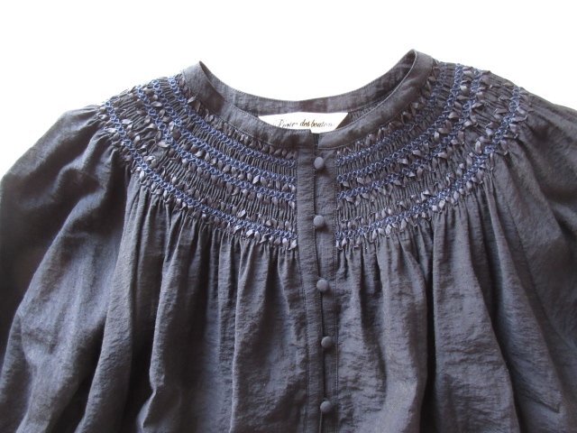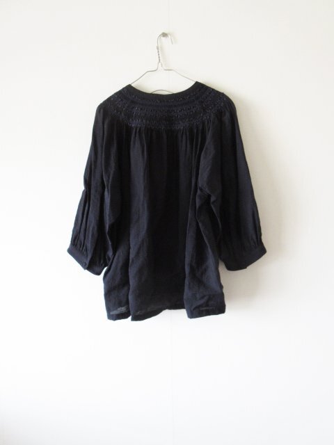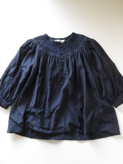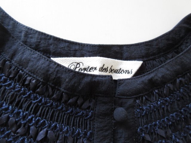 美品 2023SS Porter des boutons / ポルテデブトン P-23136 ビスコースリネンタッサー スモッキングブラウス D.NAVY / シャツ