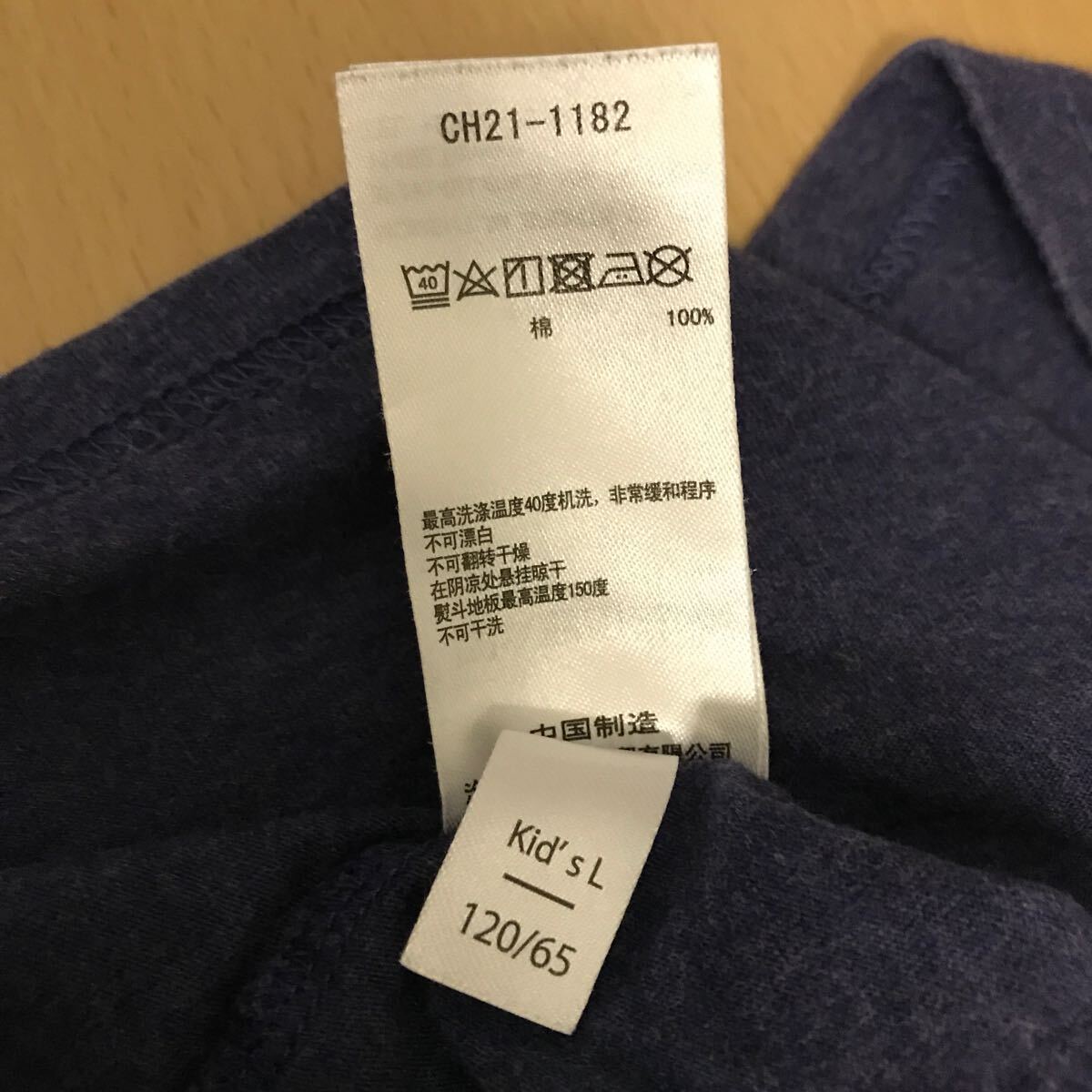 表記サイズはL/120。実測値は平置きで肩幅34cm、身幅34cm、着丈 45cm。