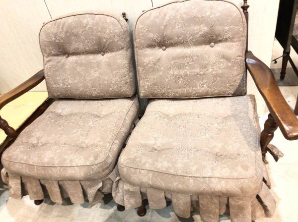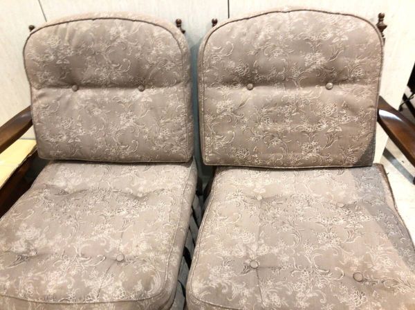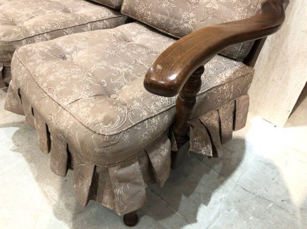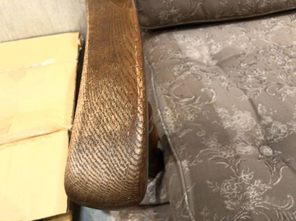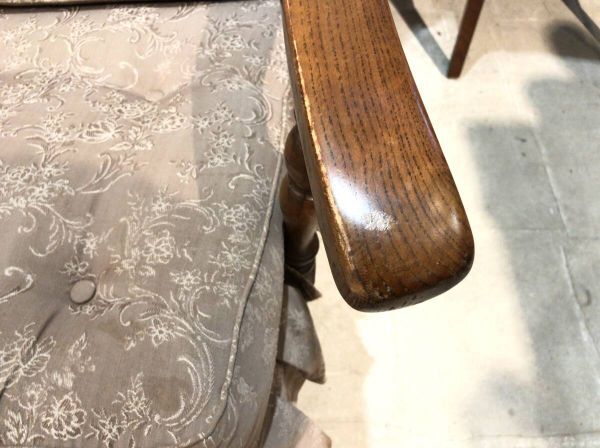 座面に少々シミ・肘置き部分に剥げがありますが、まだまだ使用していただけます。