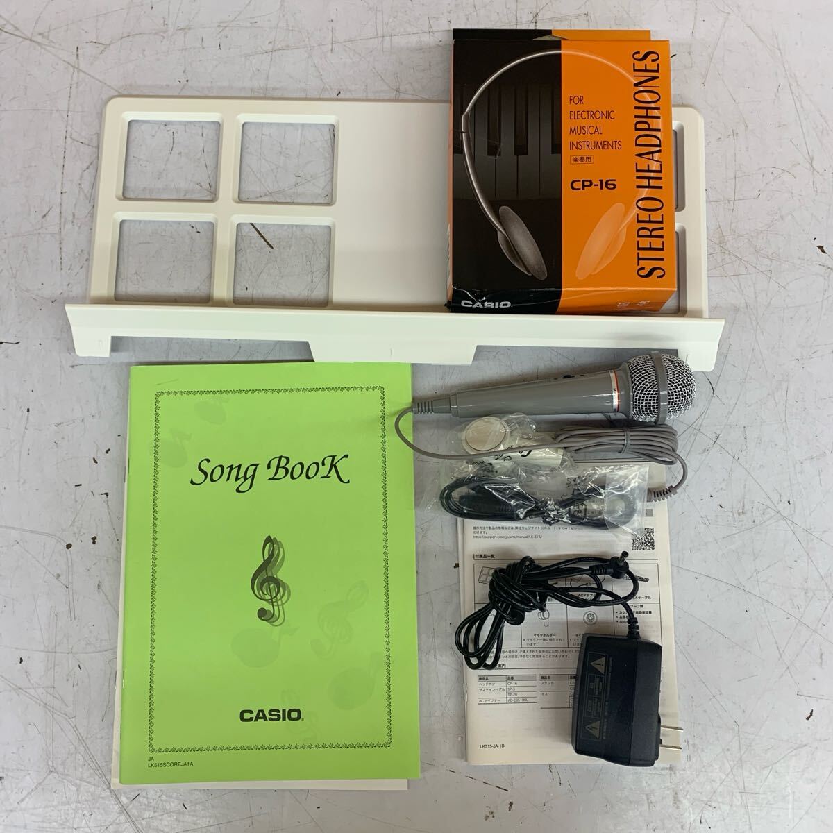 付属品は元箱、譜面立て、電源アダプター、オーディオケーブル、マイク、マイクホルダー、説明書などの書類、ヘッドホンとなります。