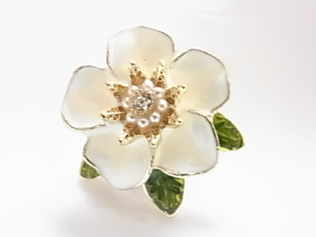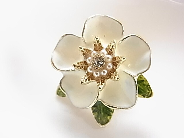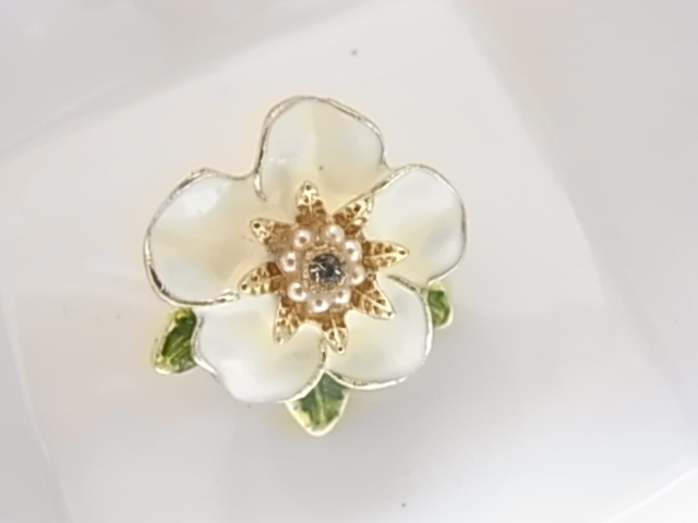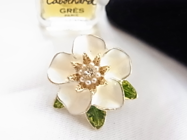 ■ビンテージ/ヴィンテージ エナメル装飾 ホワイトトーンのお花デザイン フラワーモチーフ キラキラストーン付き 可愛いピンブローチ