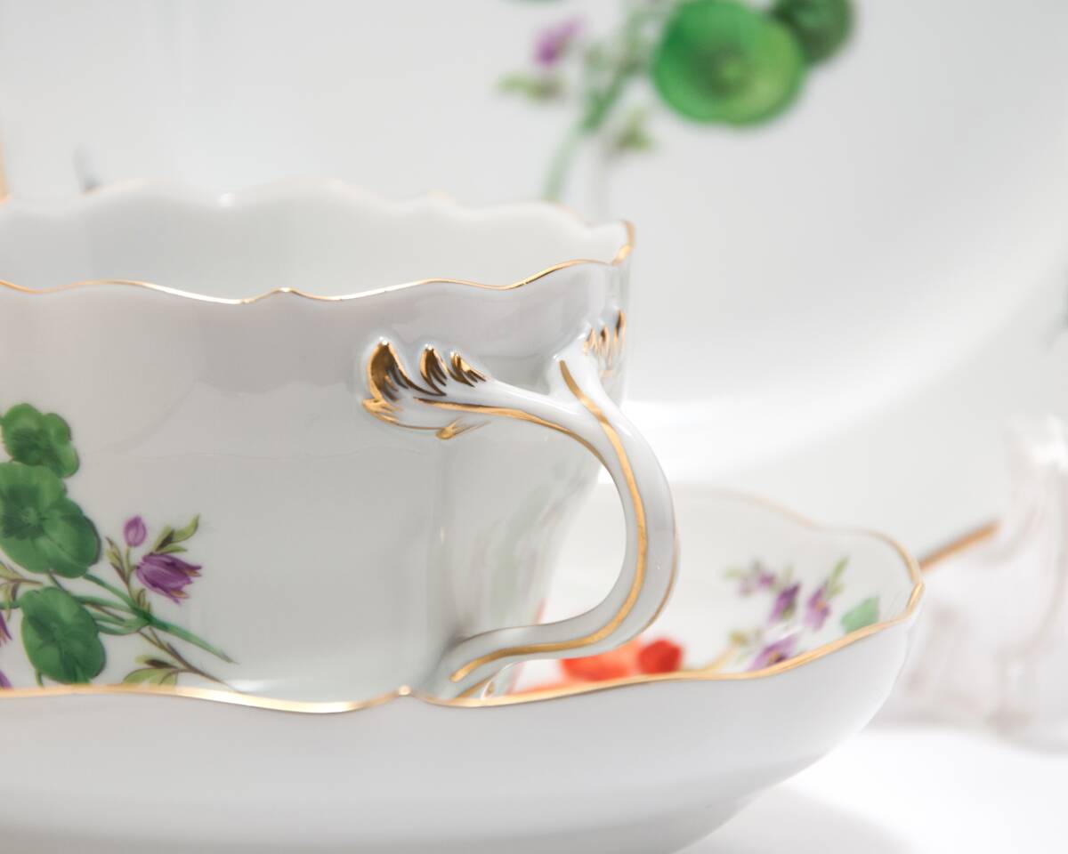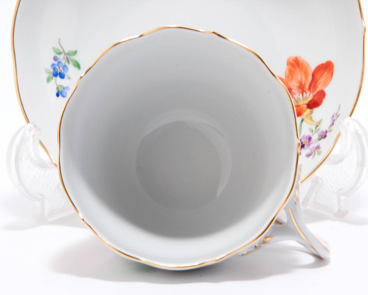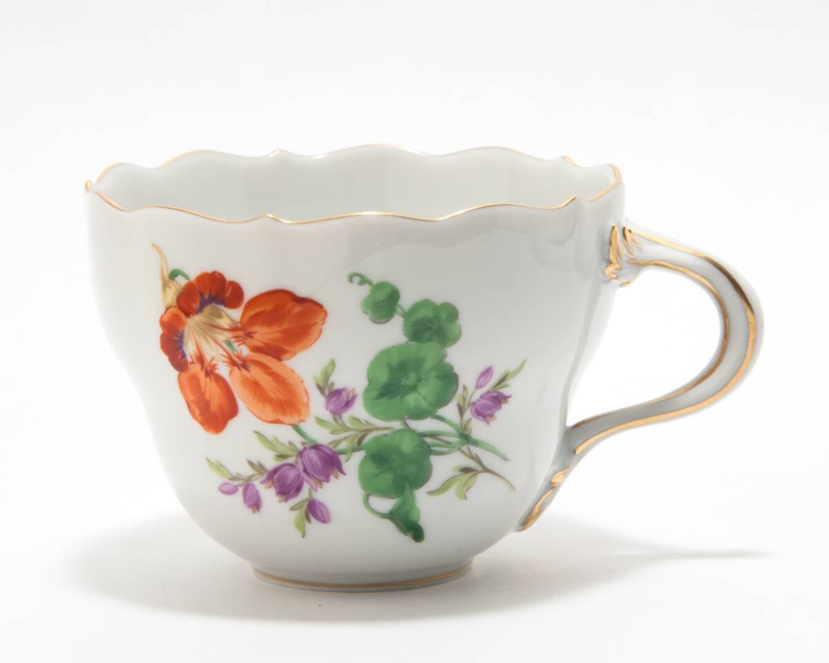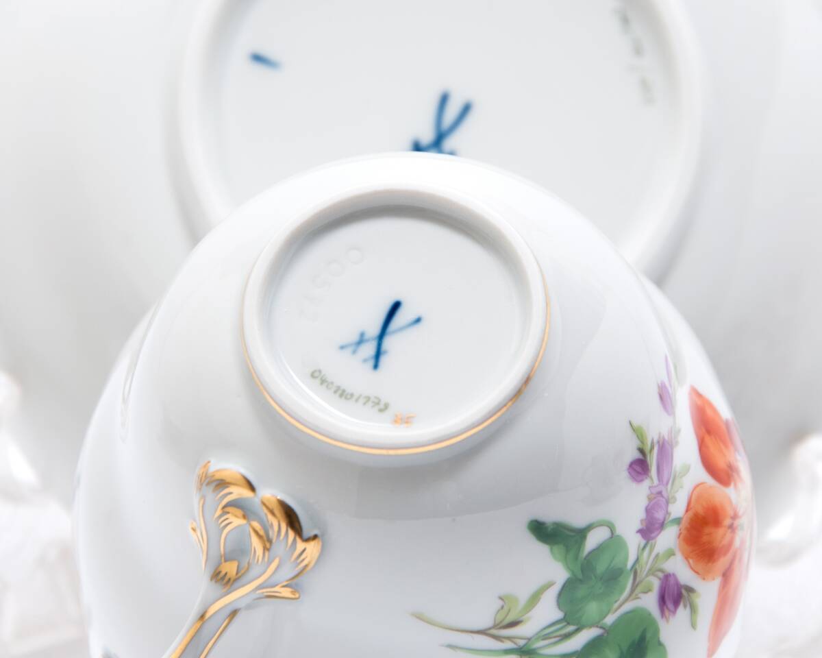 定番のマイセンのドイツの花の絵付けが綺麗なお品です。