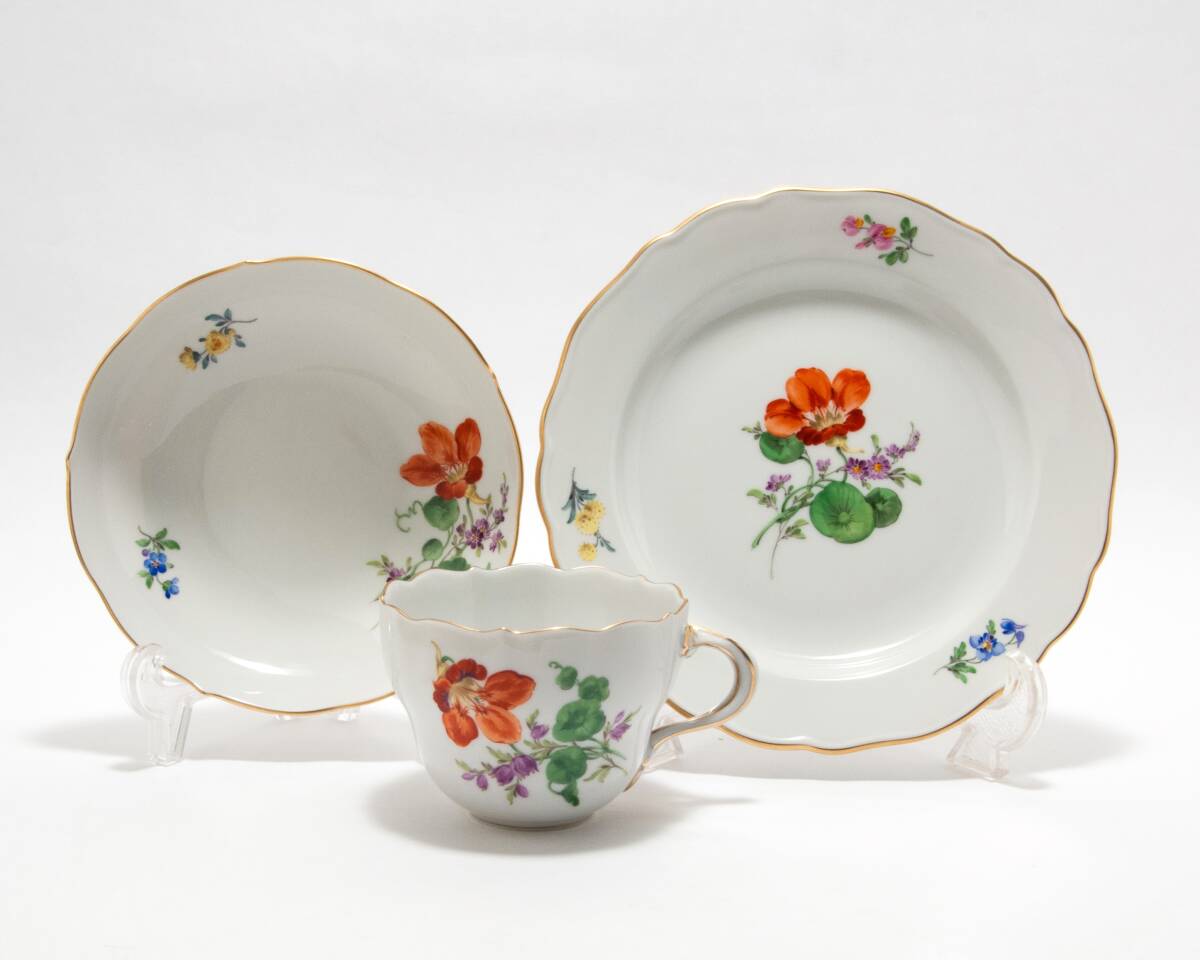 マイセンのコーヒーカップ&ソーサー 、ケーキ皿のトリオのセットです。