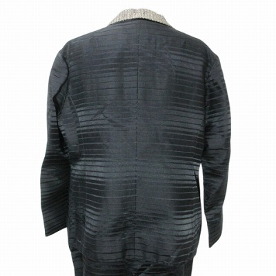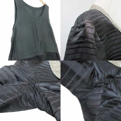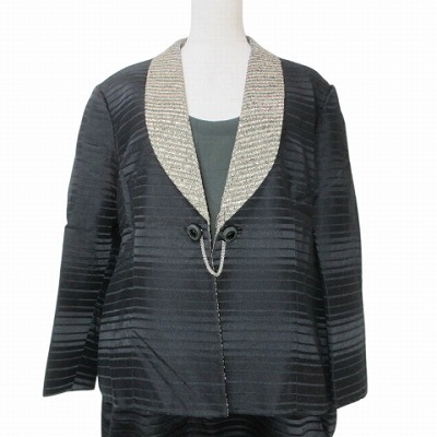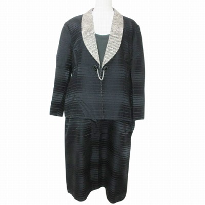 FASHION LADY 松坂屋 ジャケット ワンピース アンサンブル ボーダー ひざ丈 ノースリーブ チェーンボタン ラメ 黒 ブラック 8 L相当 X
