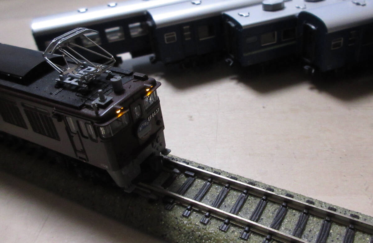 - 線路に電源を供給するとモーター車のEF64は前後に走行する