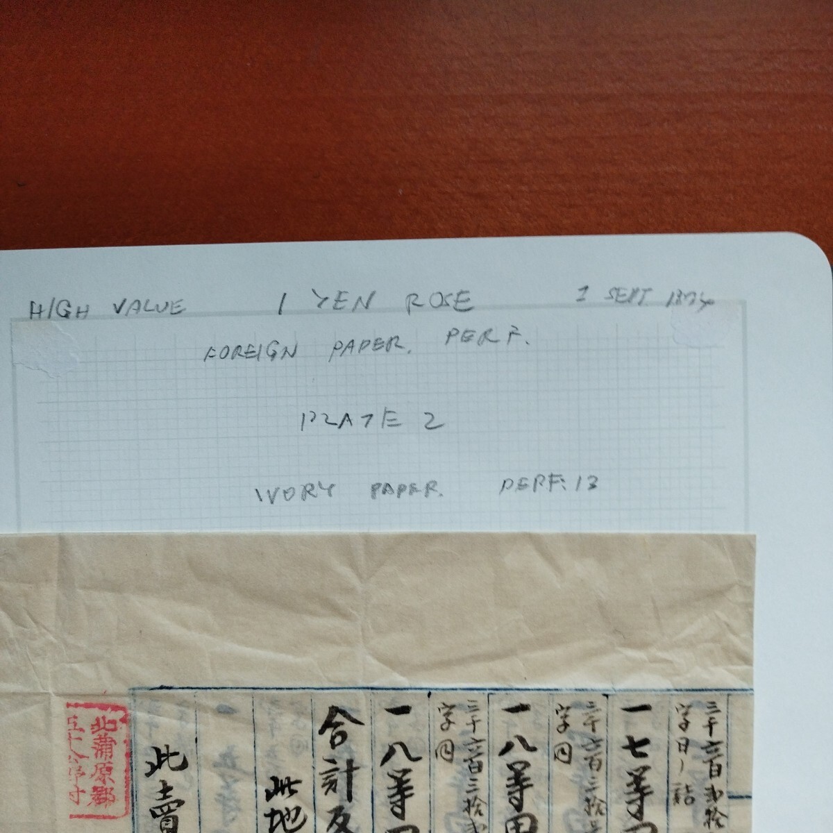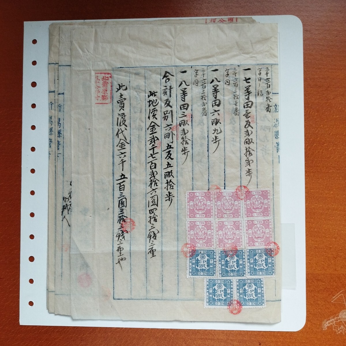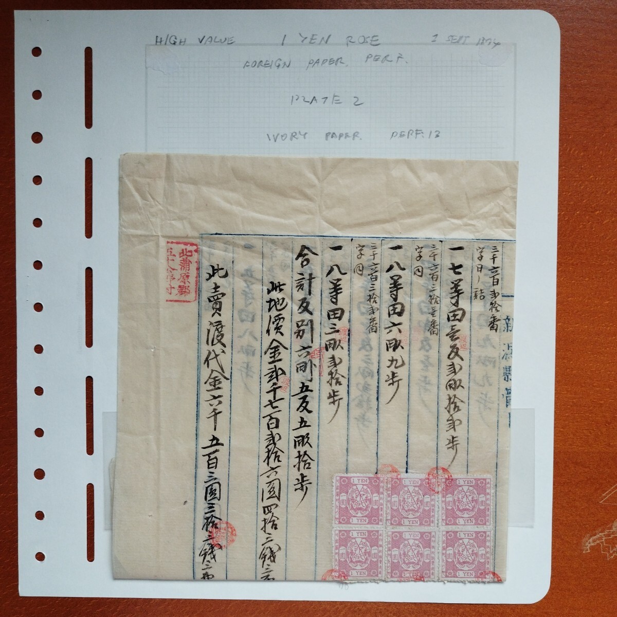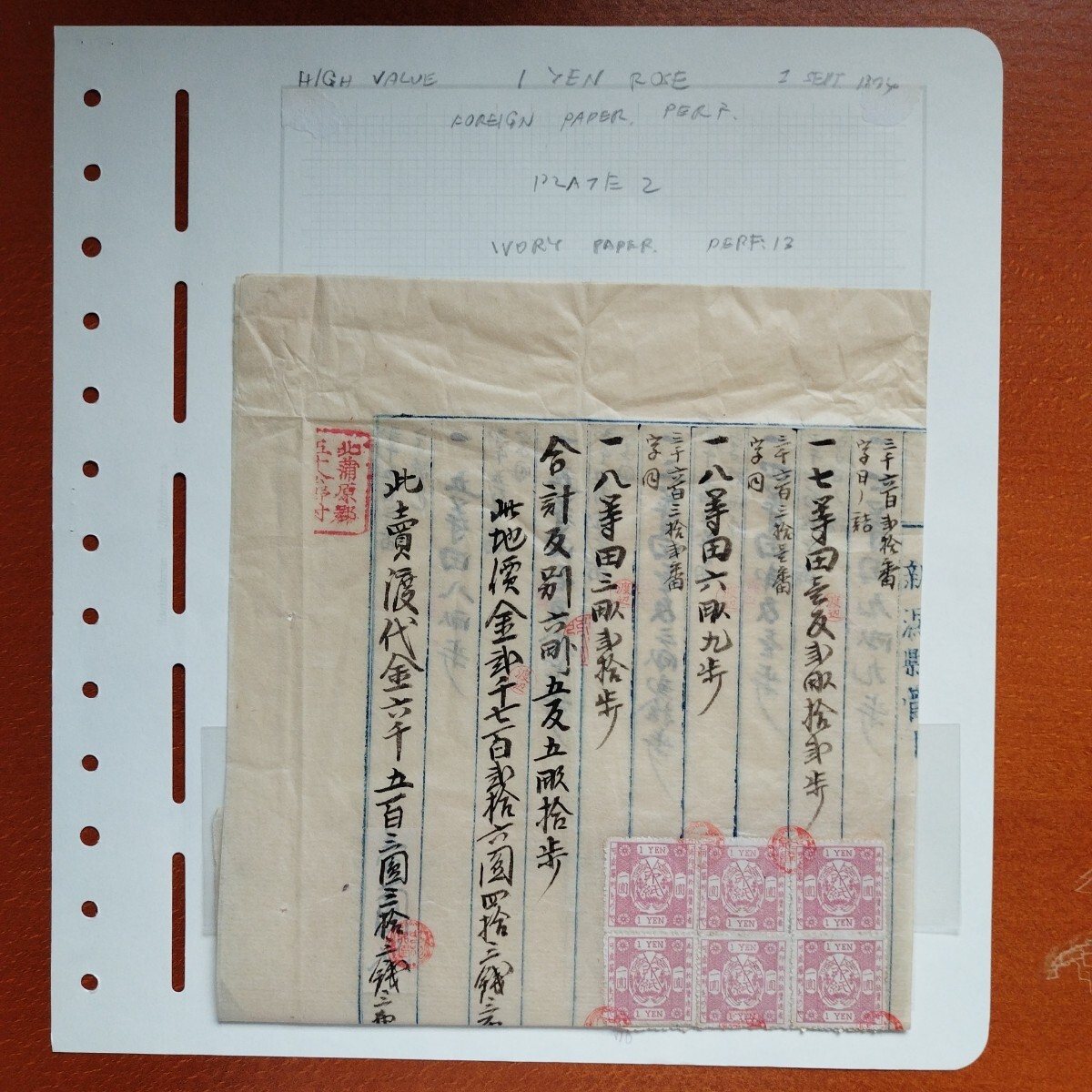 2019年版 日本印紙カタログによると、この第四次手彫印紙1 円ローズ貼り(1枚貼り)のエンタイア(証書)評価は3万円です。