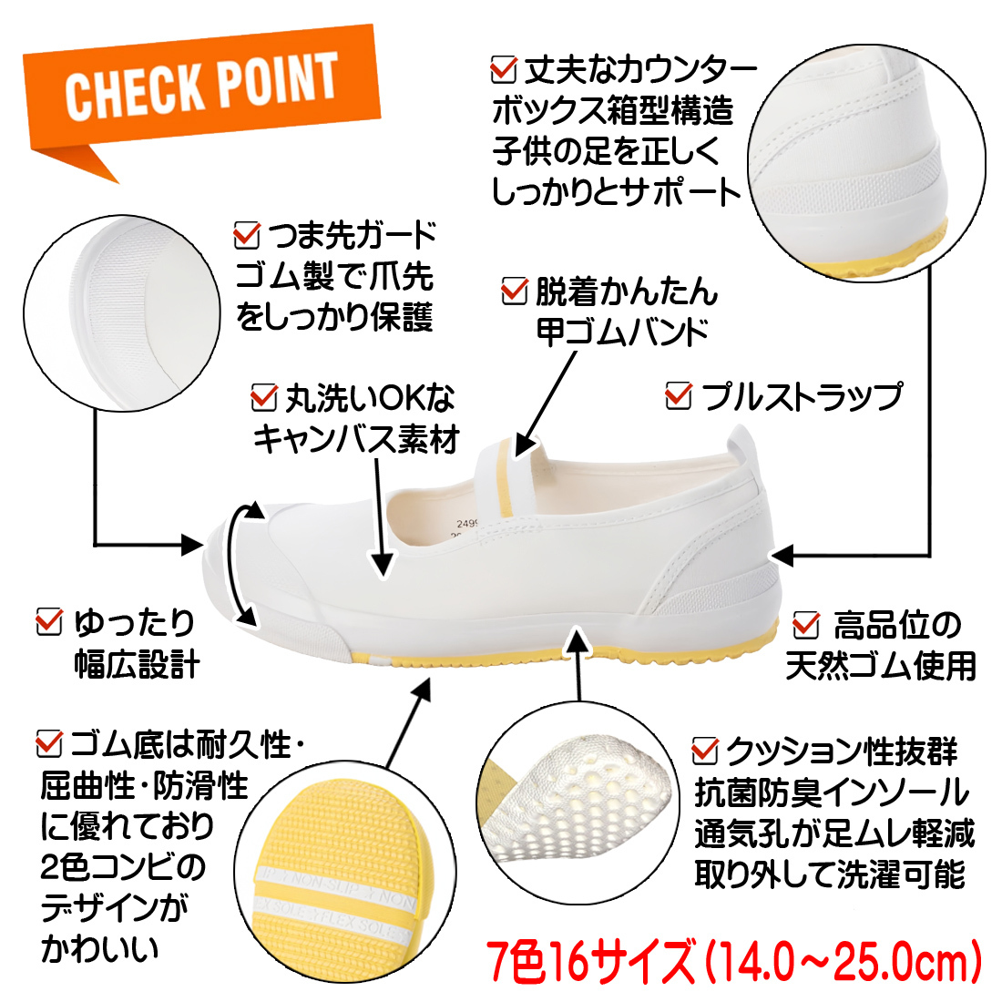7色のカラーバリエーション、14.0cm~25.0cmと豊富なサイズをご用意しました。デザイン性と機能性に優れて、子供に喜ばれる一足です。