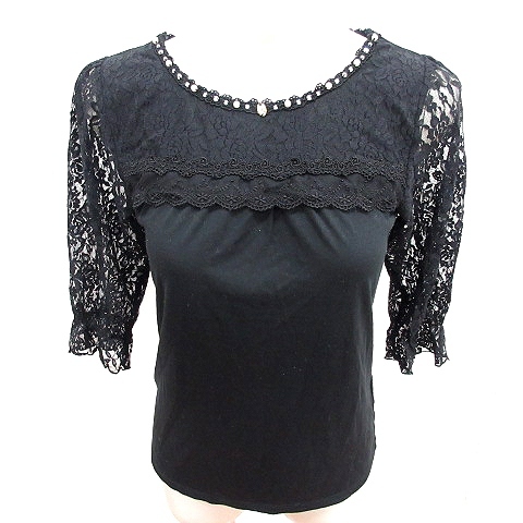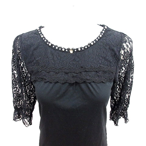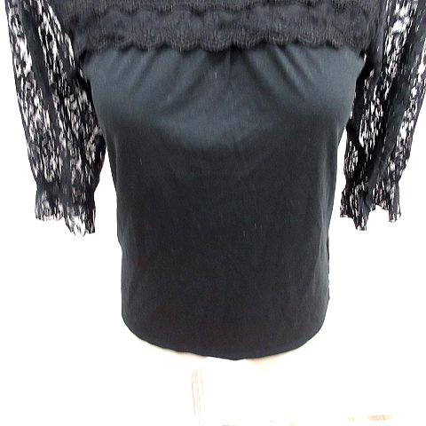 アクシーズファム axes femme ニット カットソー Uネック 七分袖 M 黒 ブラック /RT レディース