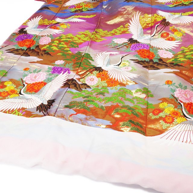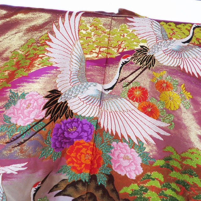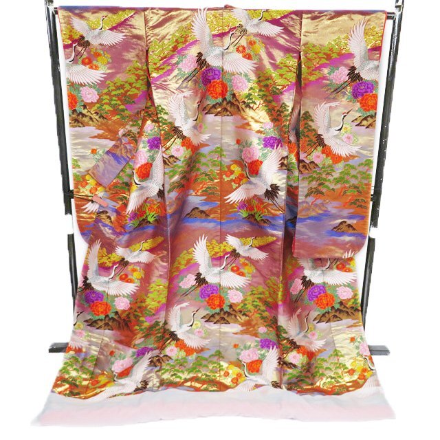 丈192cm(+0) 裄65.5cm(+1.5) 袖丈103.5cm(+3.5) 前幅30.5cm 後幅31.5cm ※身丈は肩から測っております。 ※()内は※()内の数字はお直しで直せる長さを示しています。お仕立て直しの場合は胴裏を付け替えるため、さらに長く直せる場合があります。詳しくはお問い合わせください。 単位:cm 素材 正絹 商品ランク B ●お色 多色 金 裾下のカバーにアクがございますが、他は綺麗でまだまだご着用頂けるお品物です。 伝統的な華やかな装いをお楽しみください。 写真に写っている商品のみの販売で付属品はついておりません。 一部商品は実店舗・他サイトでも並行して販売しておりますので売り切れの際はご了承ください。 その他多数販売中 gu- | ||||||