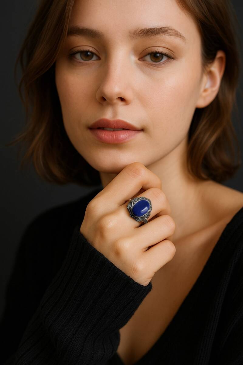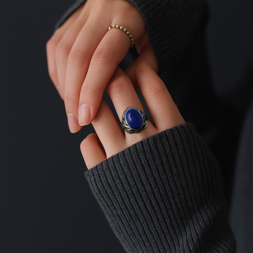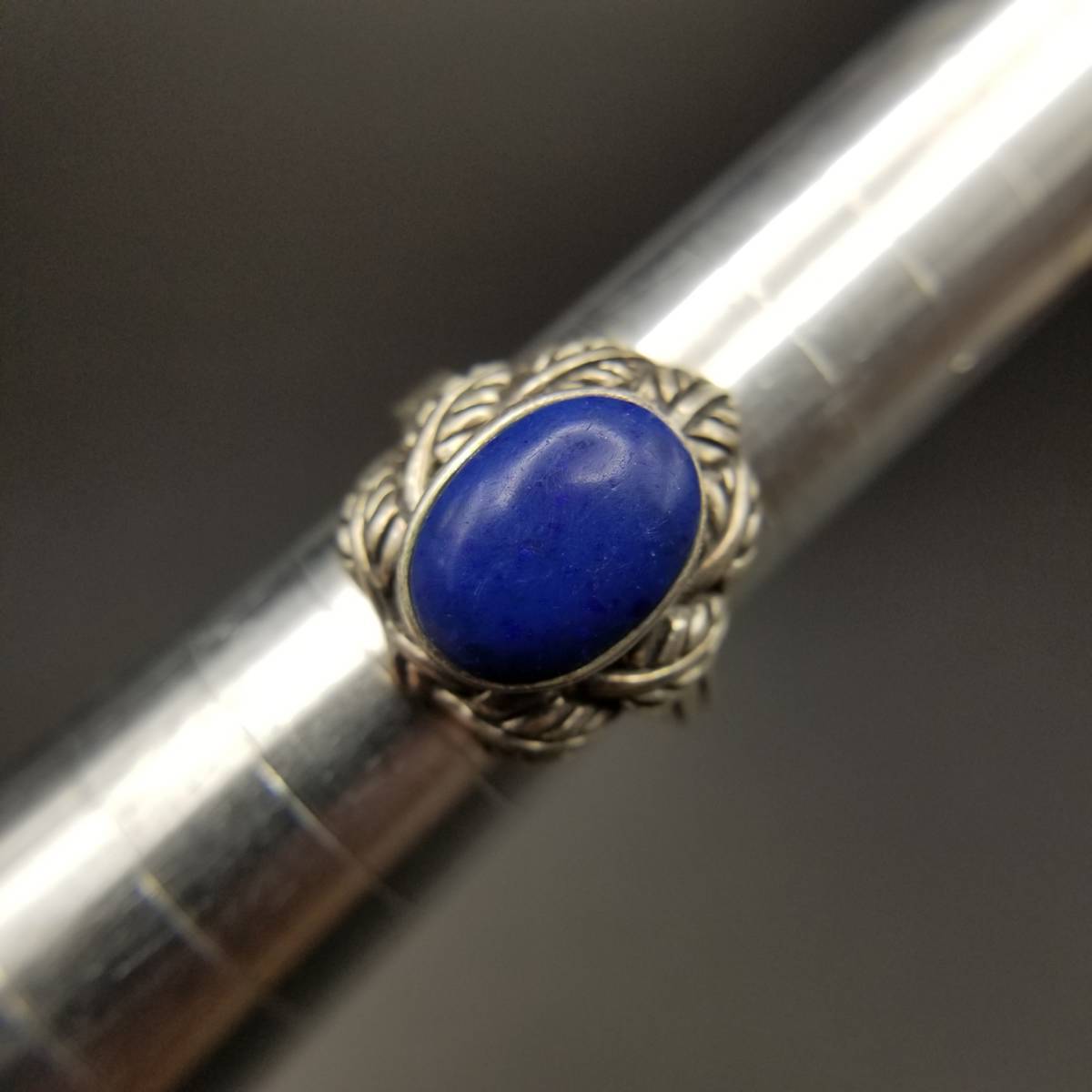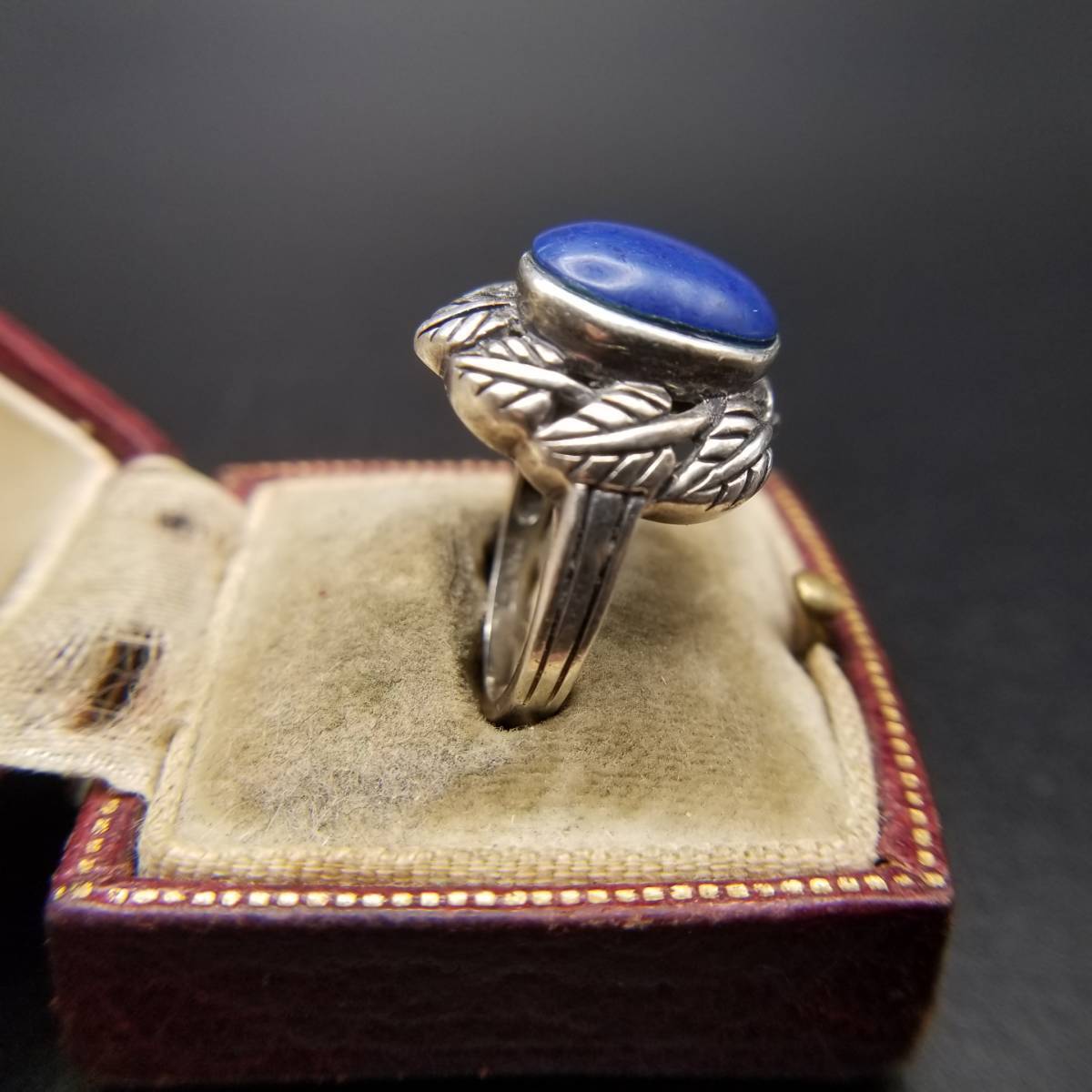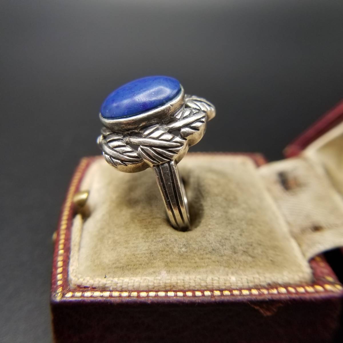 HAN デュモルティエライト カボション 葉 彫刻 925 シルバー ヴィンテージ リング 5.7g 銀 指輪 ドレスリング 紺碧 艶消し Y9-Y