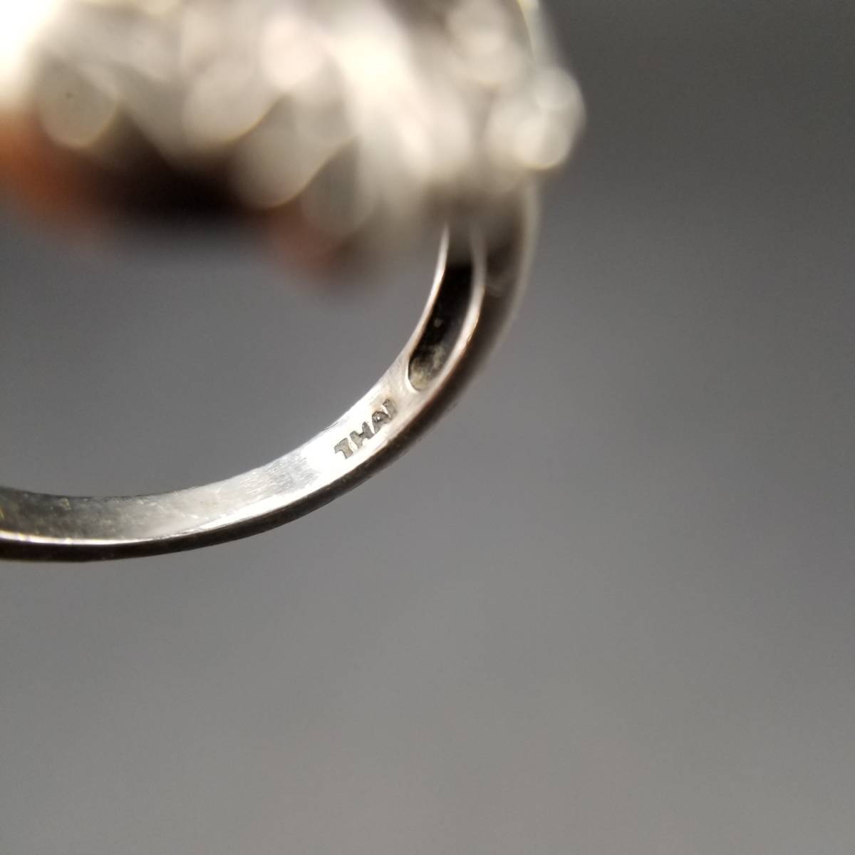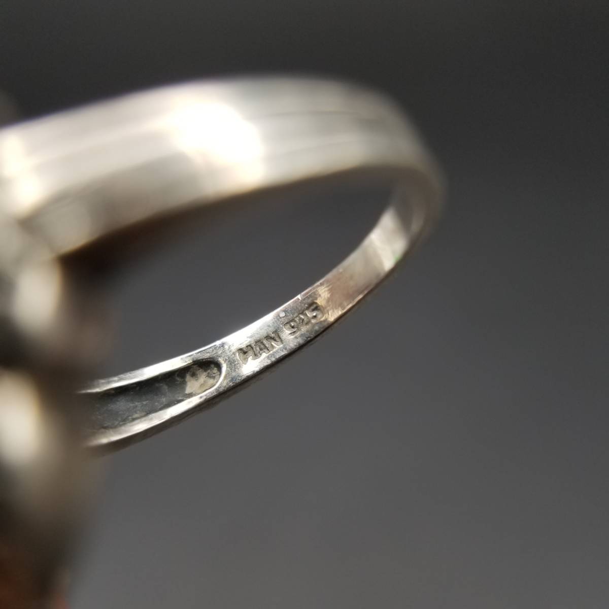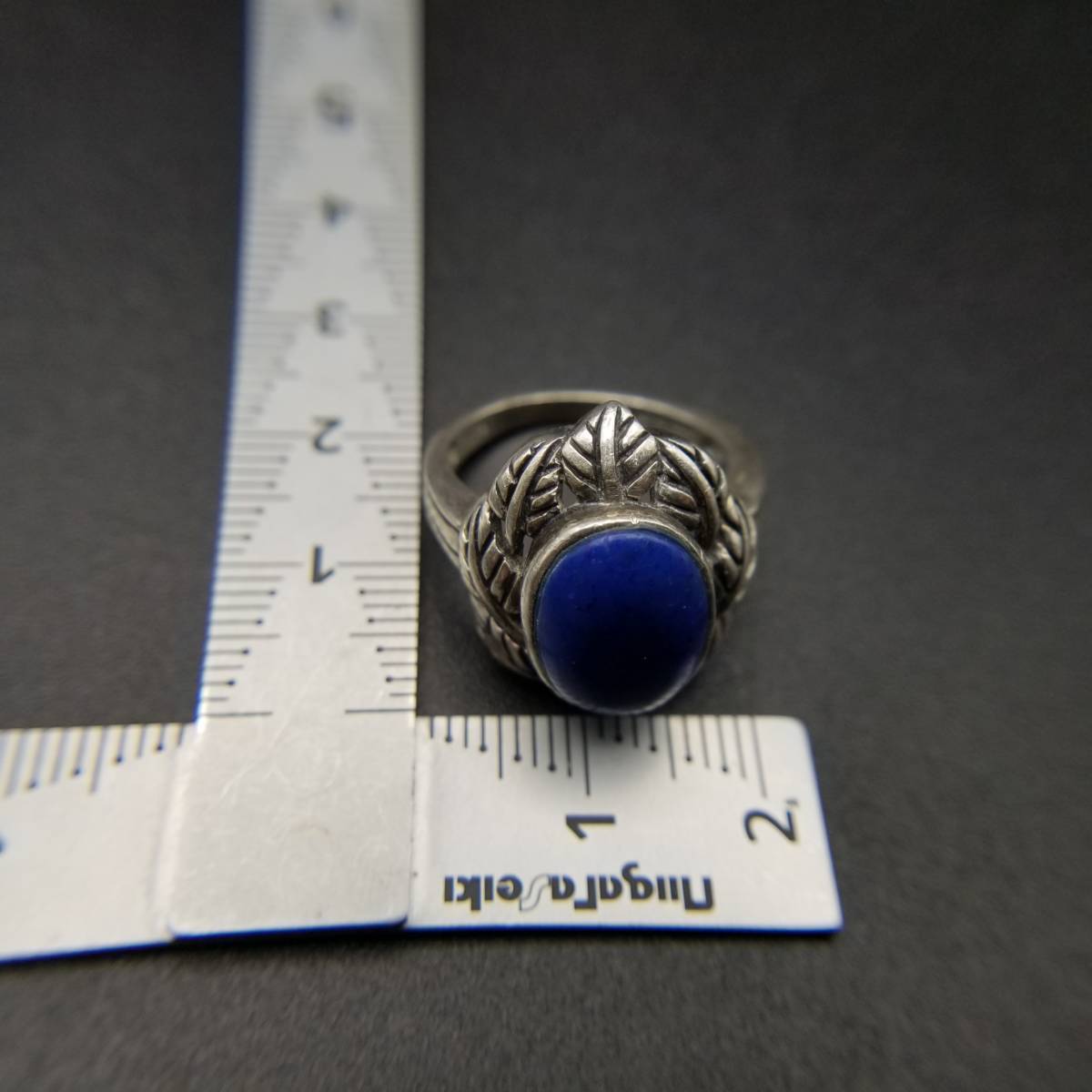 HAN デュモルティエライト カボション 葉 彫刻 925 シルバー ヴィンテージ リング 5.7g 銀 指輪 ドレスリング 紺碧 Y9-Y