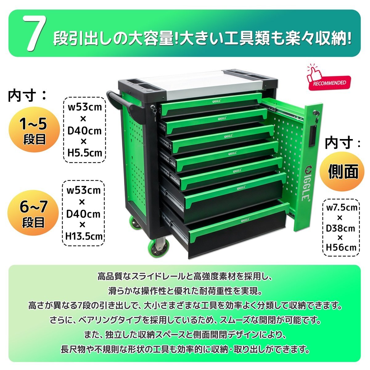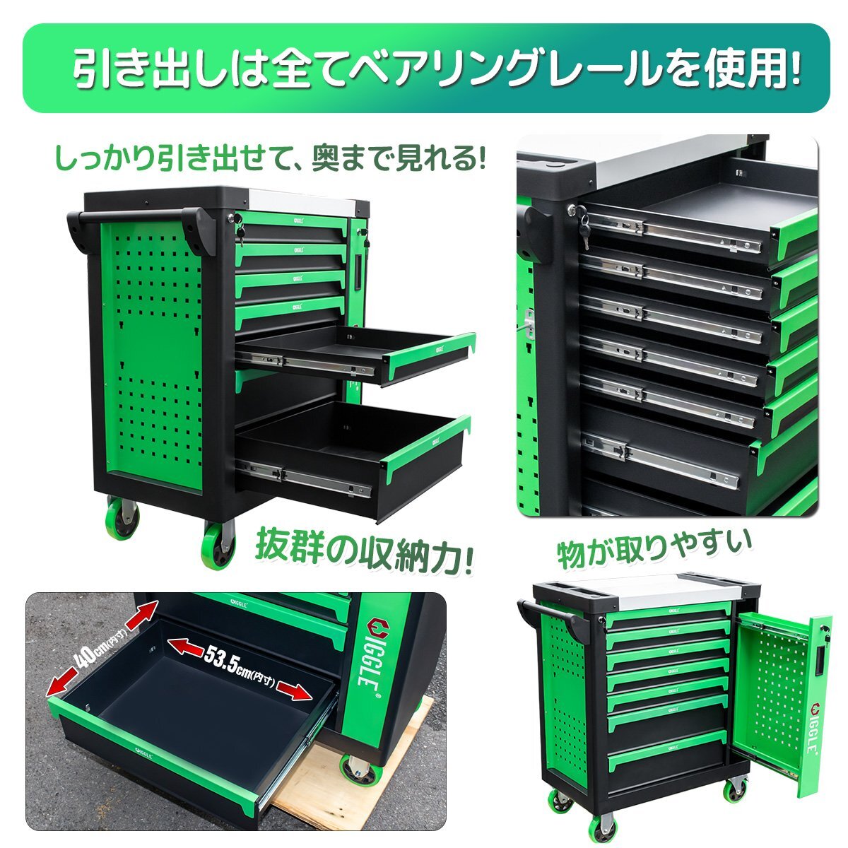・引き出し内寸:奥行400x横535x高さ55mm(1~5段) /135mm(6~7段)