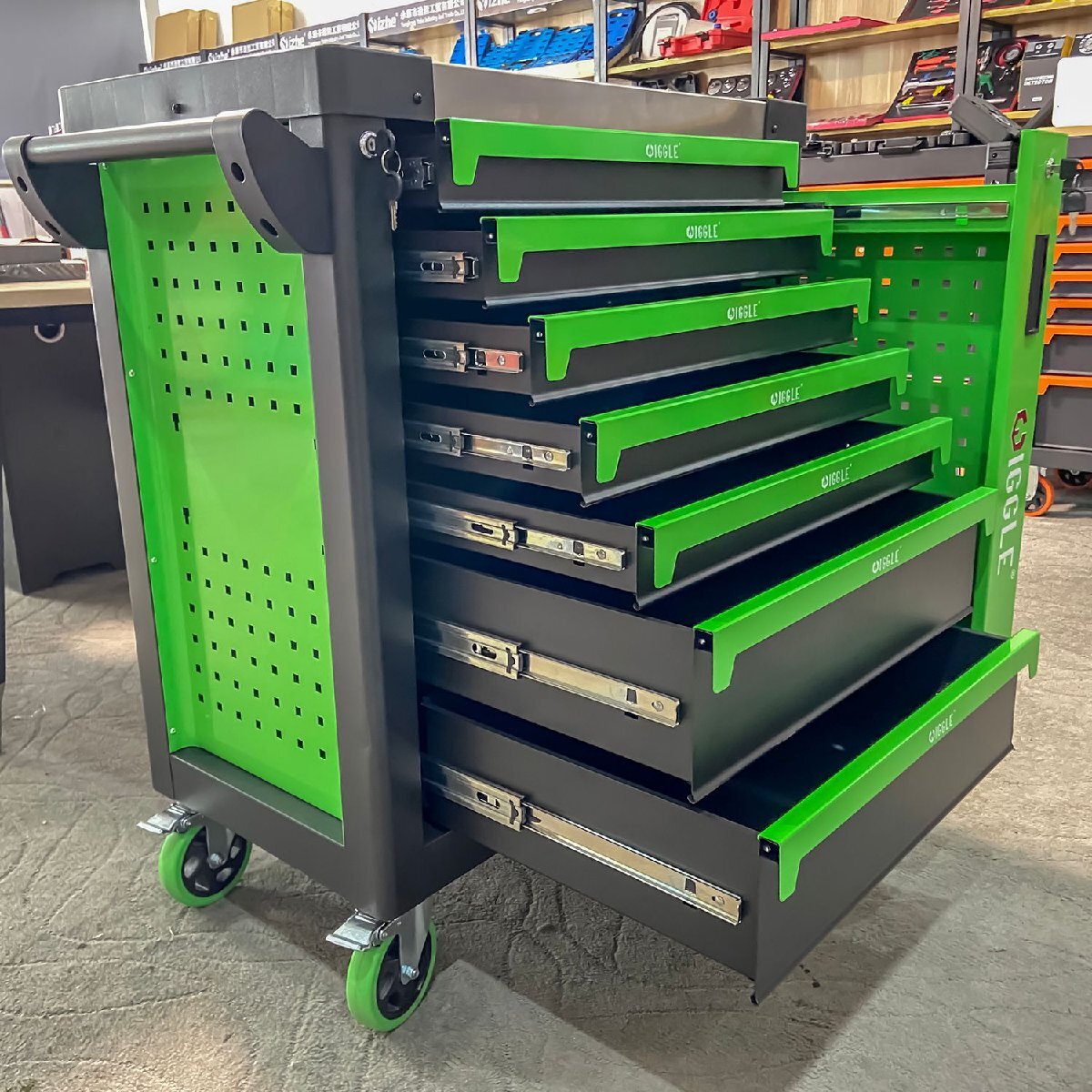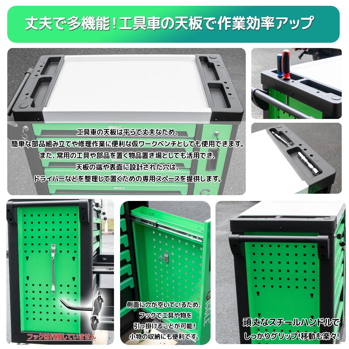 ★★フック掛け穴満載のローラーキャビネット 7段引き出し工具箱です。
