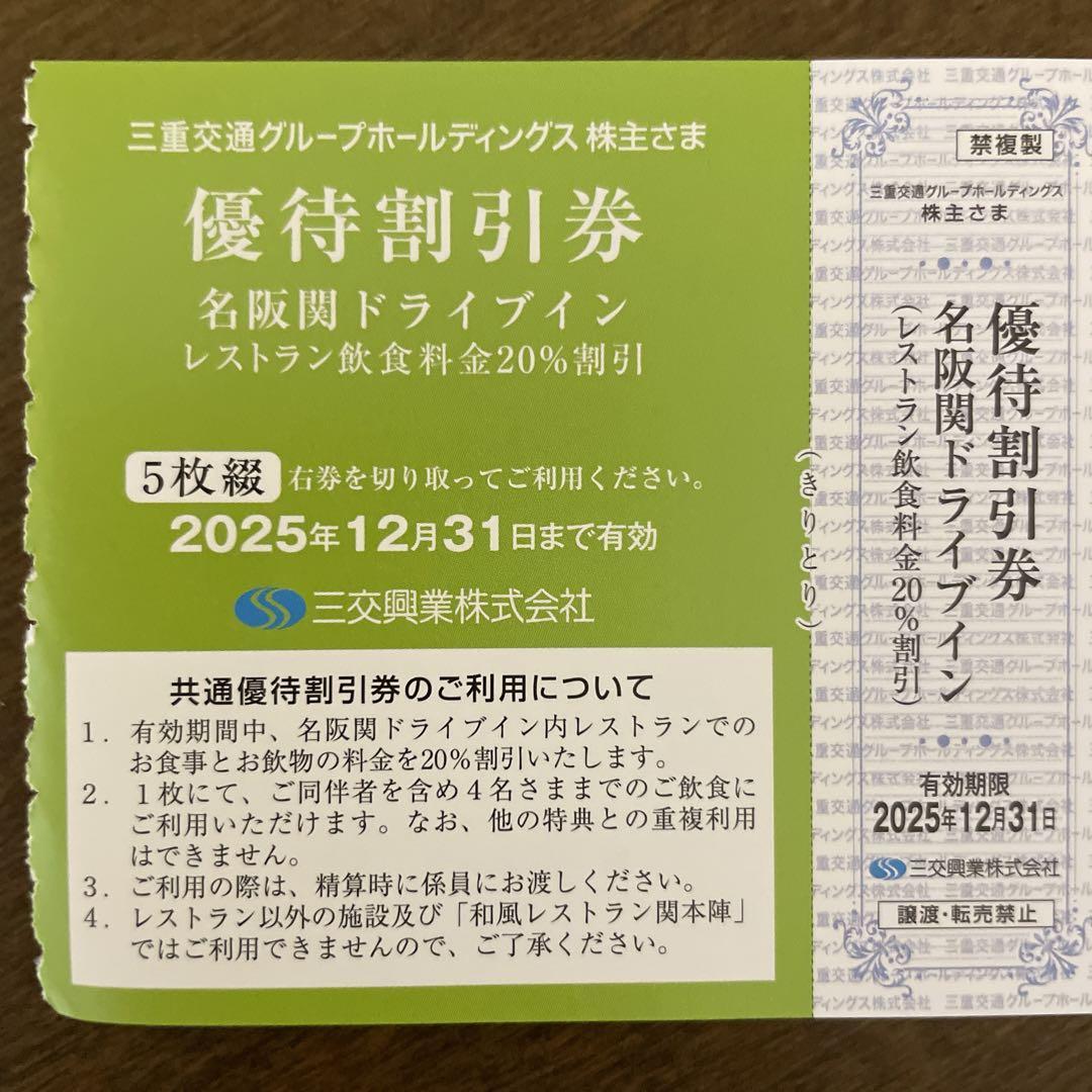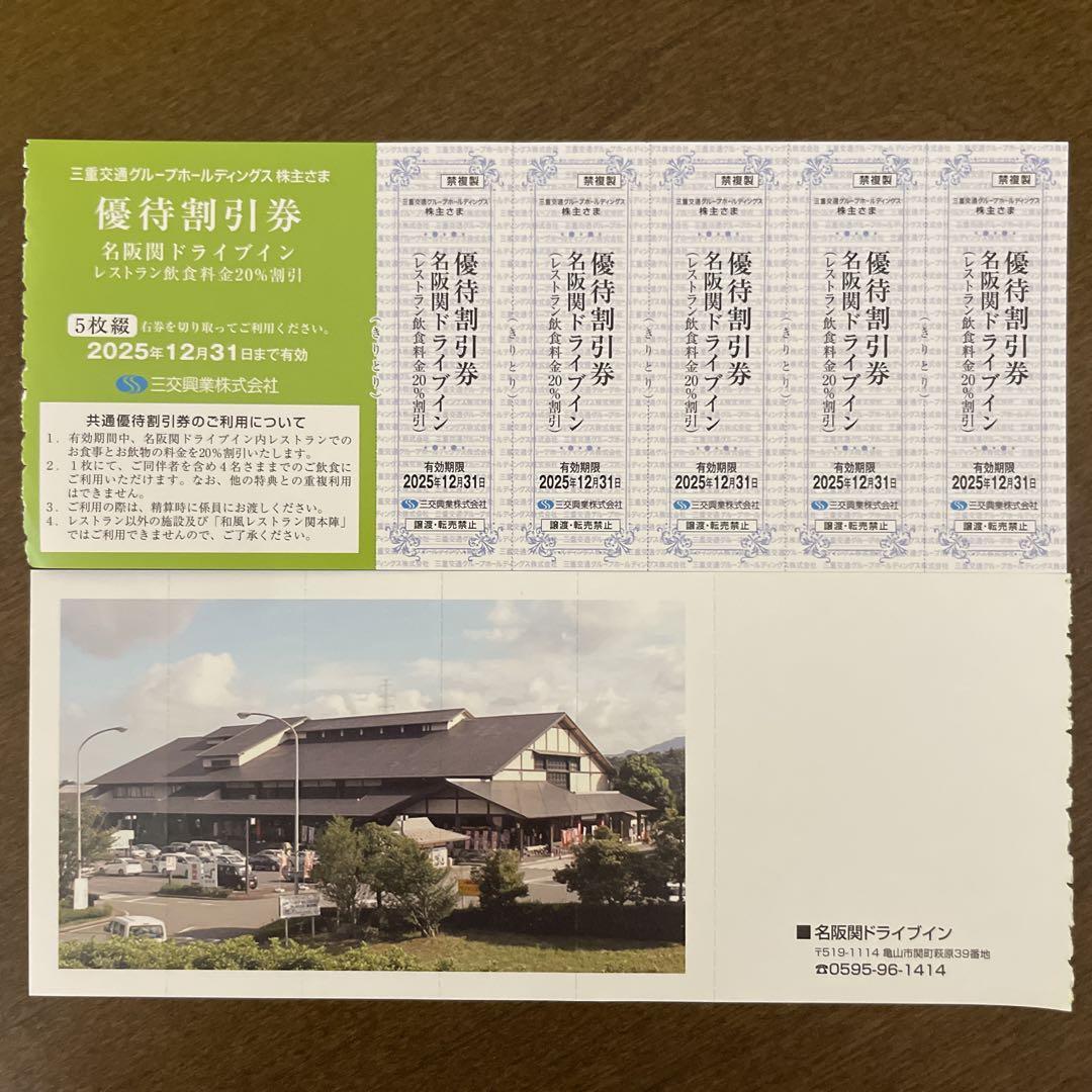 名阪関ドライブイン レストラン飲食料金20%割引券5枚綴り