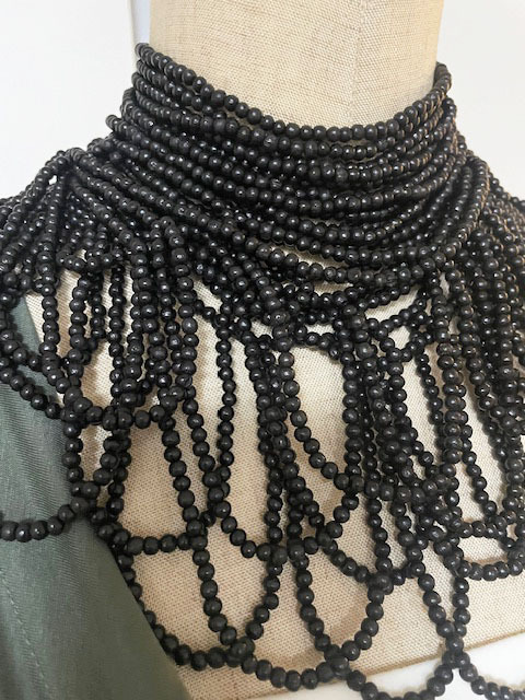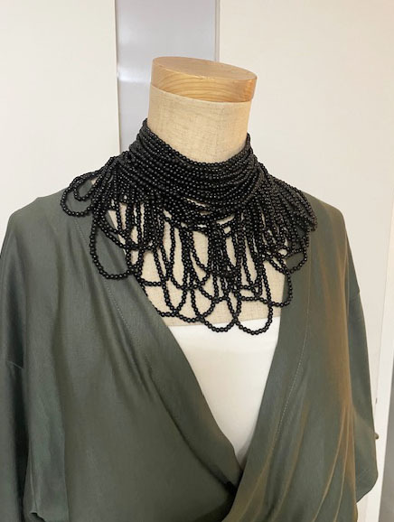 アクセサリー整理 パリのギャラリーで購入アーティストさんのボリュームビーズネックレス ブラック黒エスニック風ディスプレーにもellevery