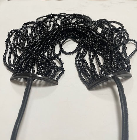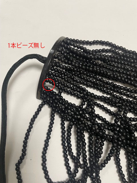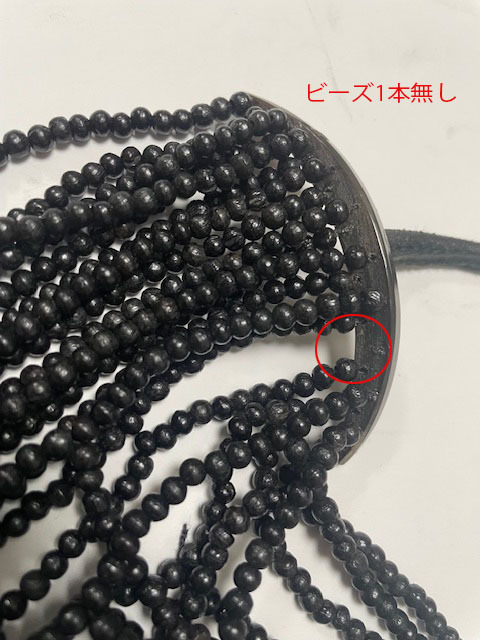 色はブラックのナチュラルっぽいビーズで、プラスティックのビーズではありませんが、素材不明です。