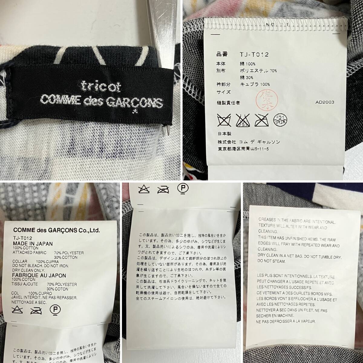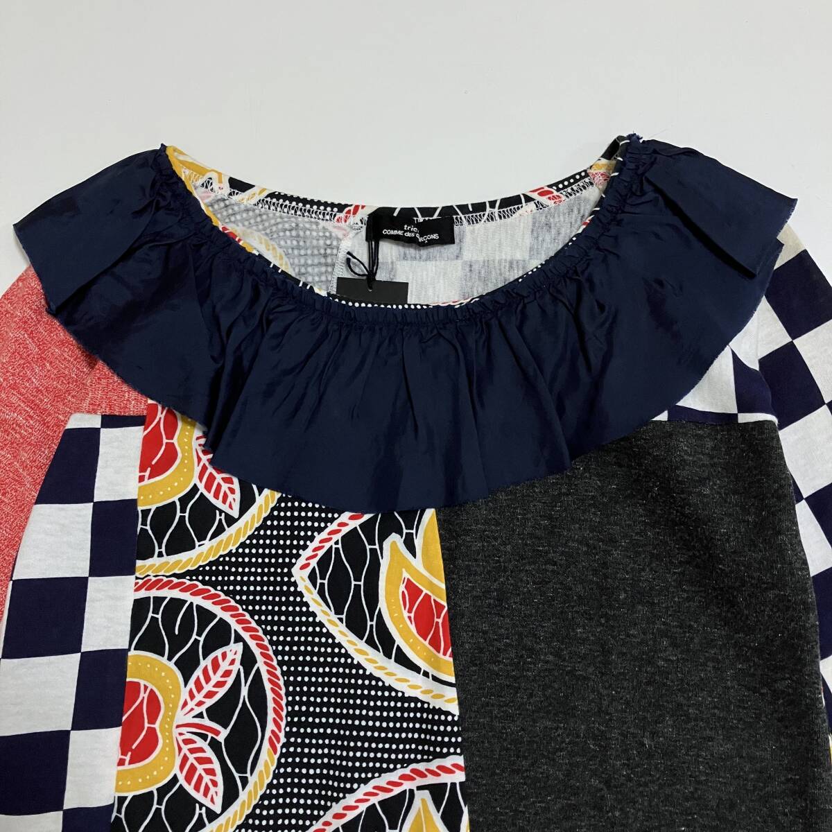 タグ付き AD2003 tricot COMME des GARCONS フリル 襟 パッチワーク クレイジーパターン カットソー