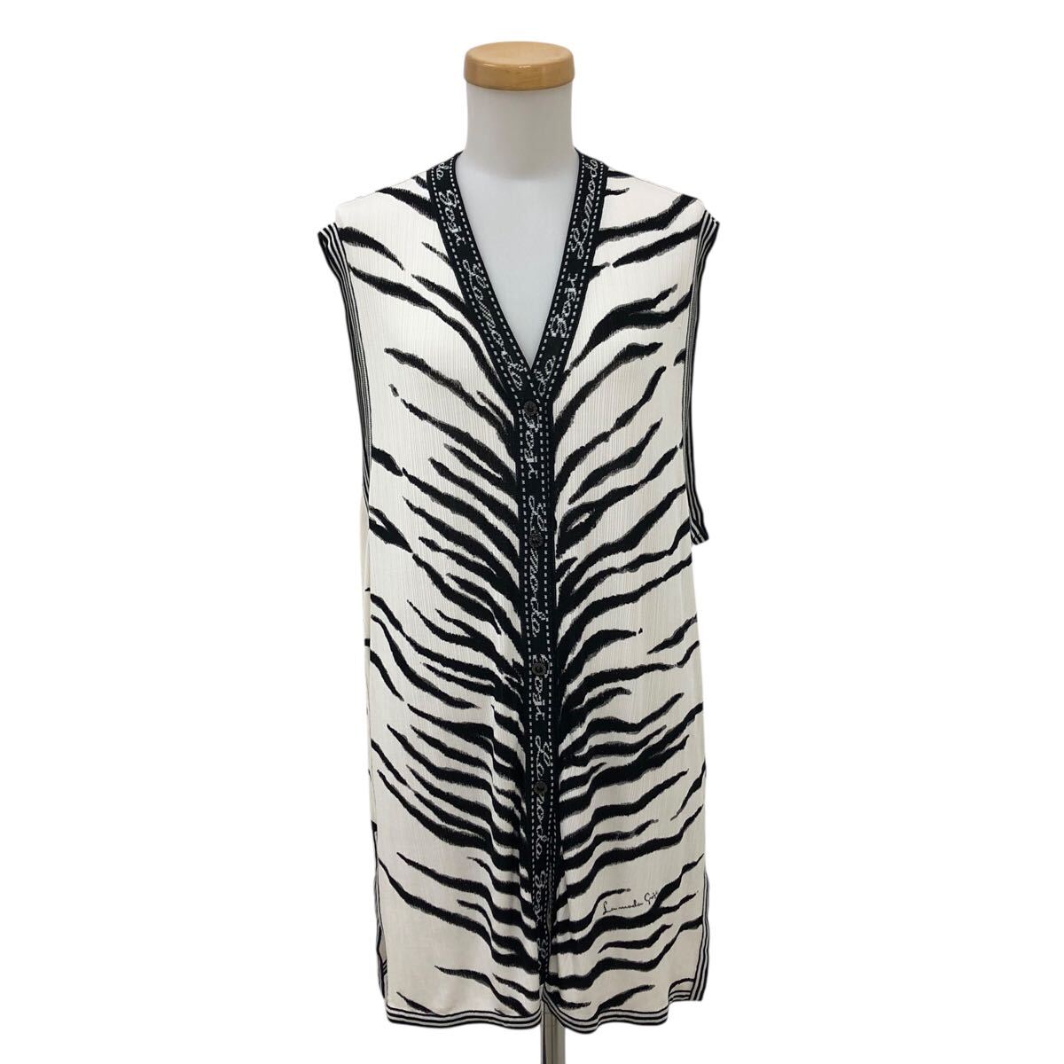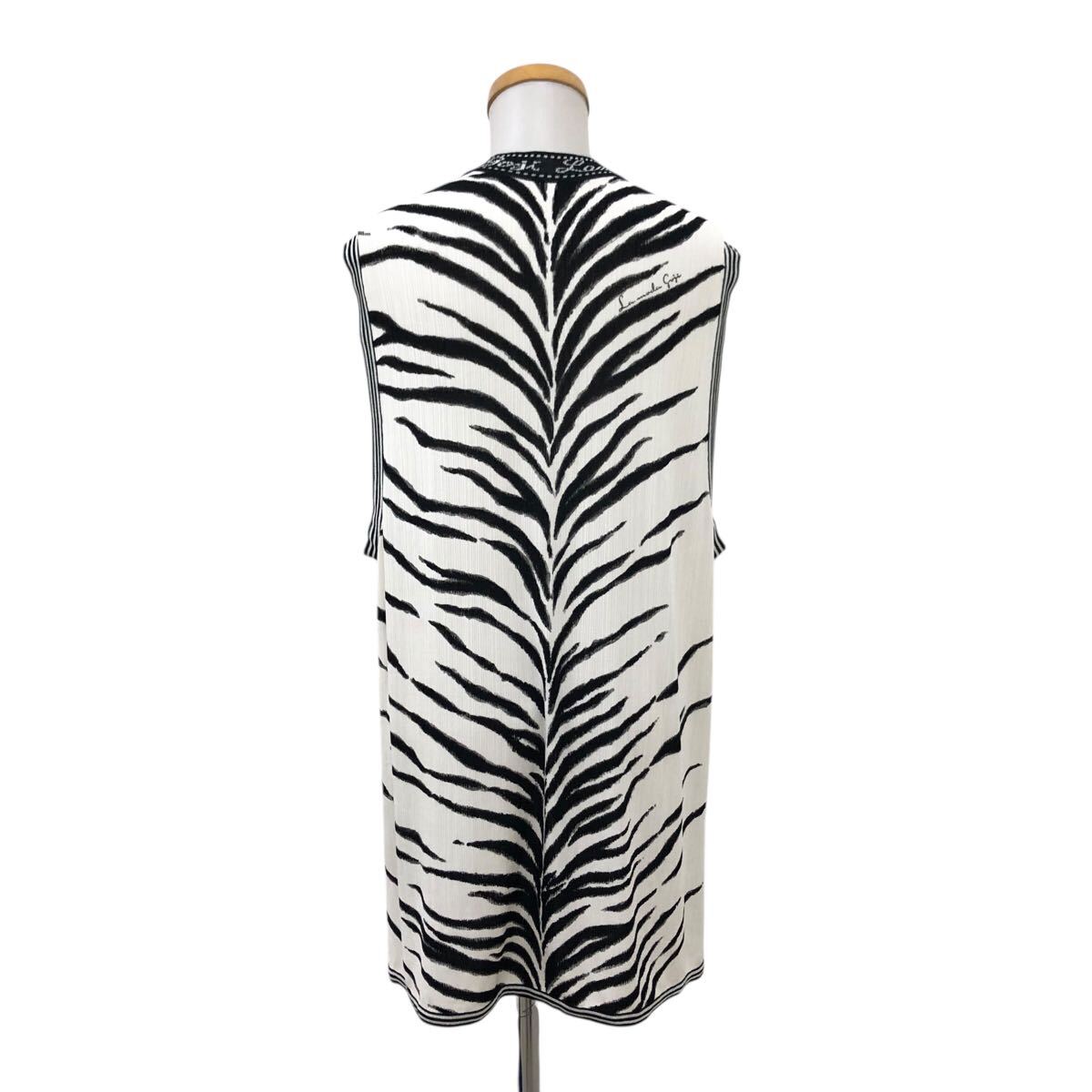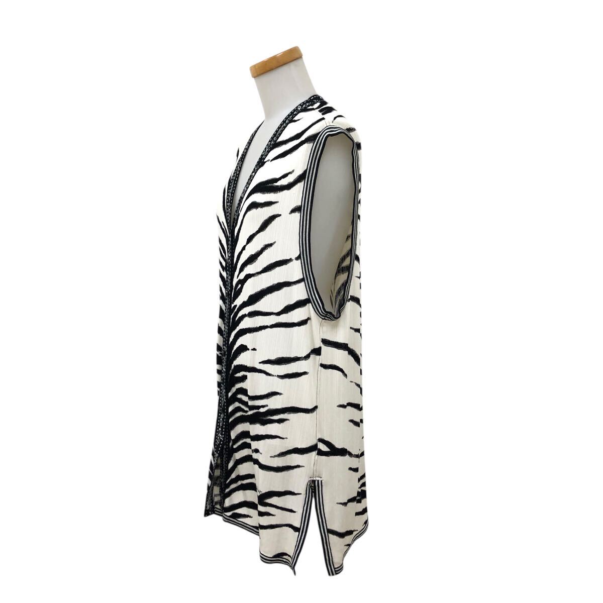 Nm312-17 伊太利屋 イタリヤ GK ゼブラ しまうま 柄 Vネック ロング ベスト ジレ 羽織り トップス ホワイト系 レディース 11 日本製