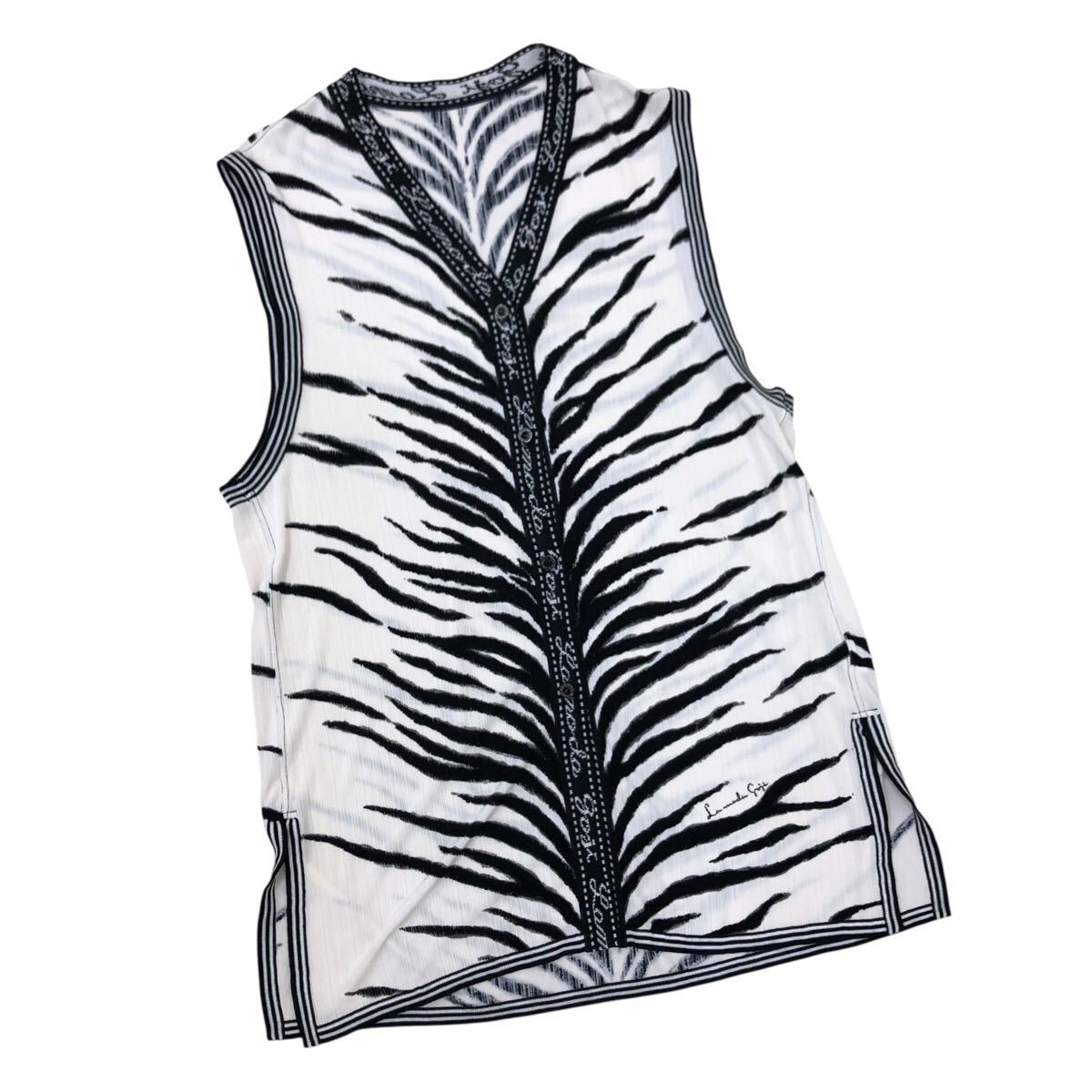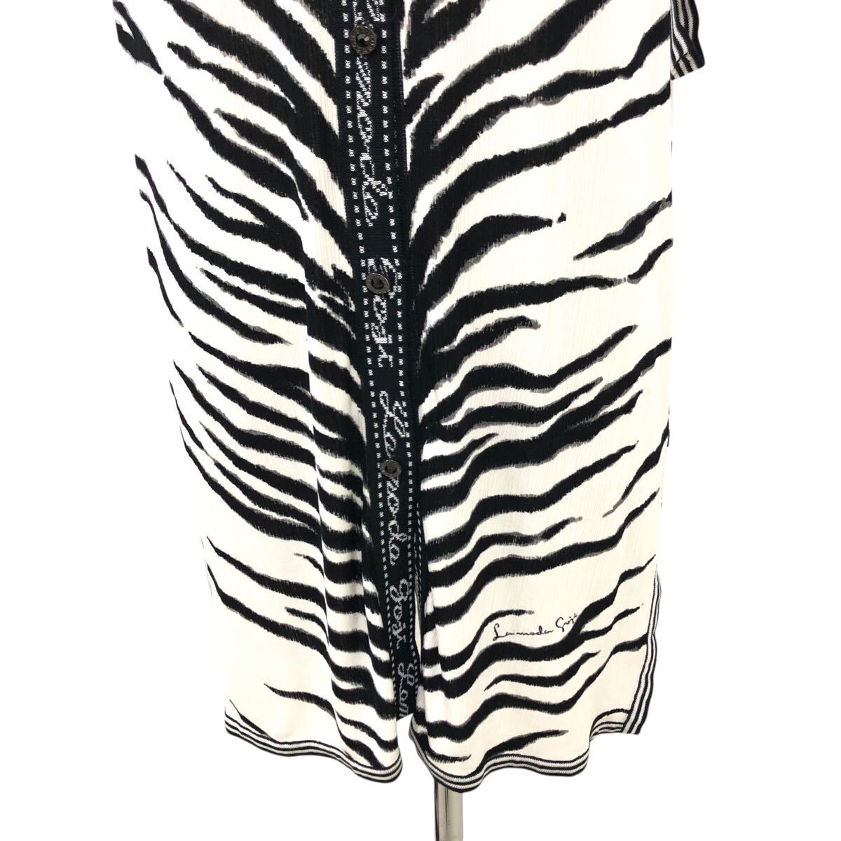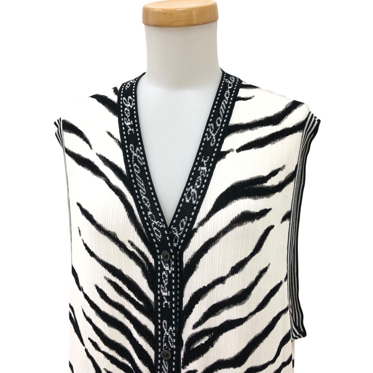 Nm312-17 伊太利屋 イタリヤ GK ゼブラ しまうま 柄 Vネック ロング ベスト ジレ 羽織り トップス ホワイト系 レディース 11 日本製
