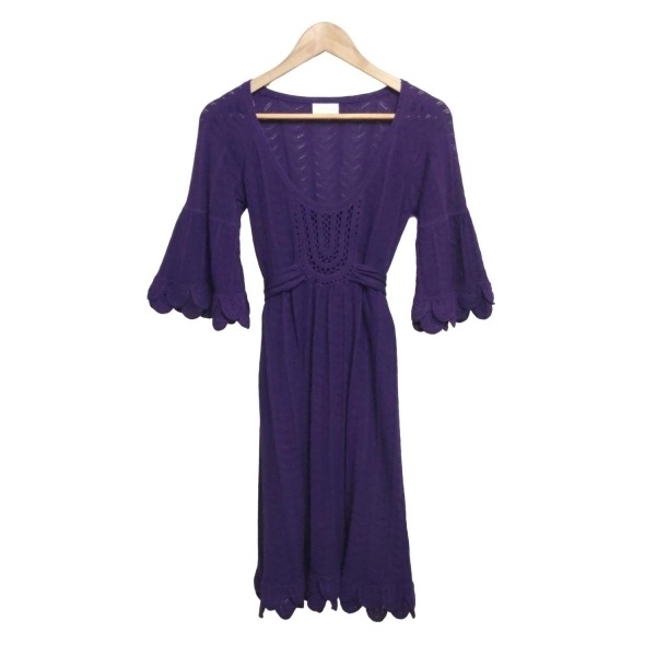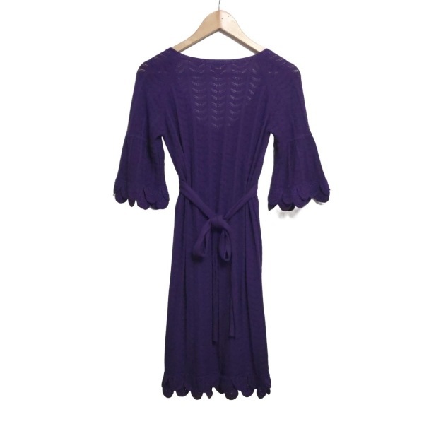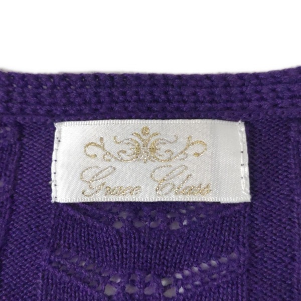グレースクラス Grace Class サイズ36 S - パープル レディース クルーネック/半袖/ひざ丈/ニット/かぎ編み/インナー付き 美品 ワンピース