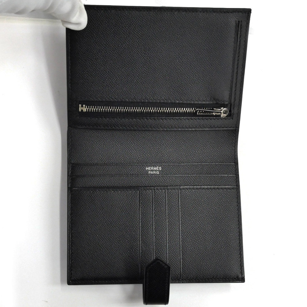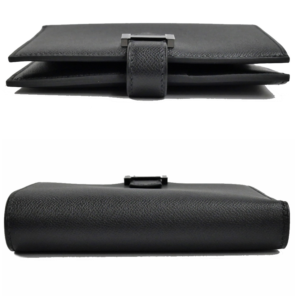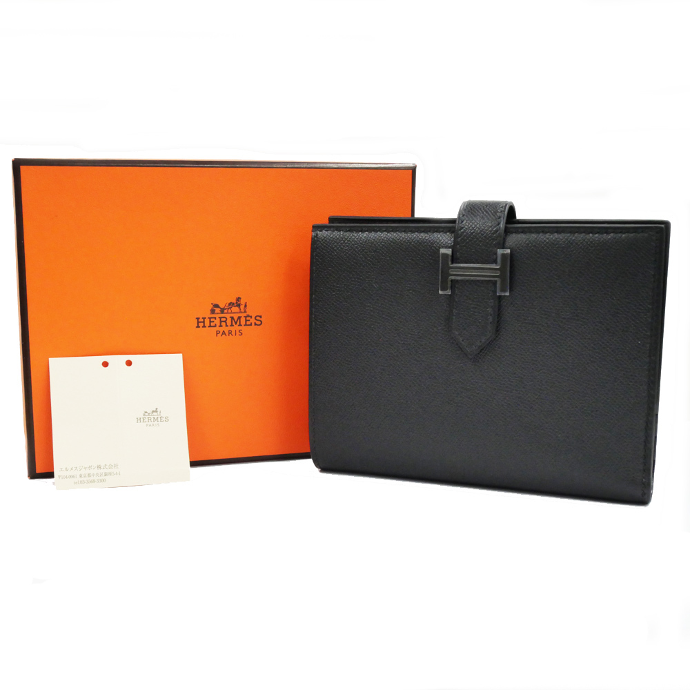 【名東】エルメス ベアンコンパクト 二つ折り財布 モノクローム ソーブラック ヴォーマダム W刻 メ未使用