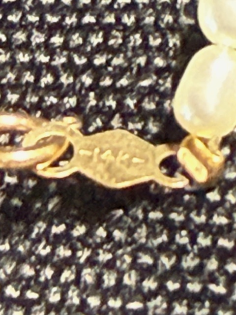 ご覧いただきありがとうございます。パールと14金の上品なネックレスです。長さは41cm程度です。美品ですが自宅保管品ですのでお写真をよく確認いただき落札後はノークレームノーリターンでお願います。