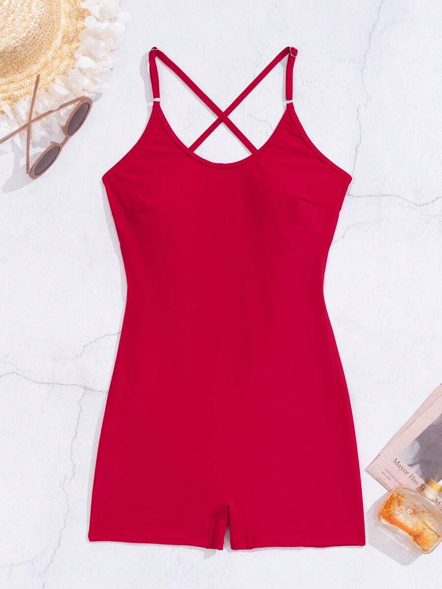 レディース 水着 ワンピース 女性用 無地 クロスバック ホルターネック ワンピース水着、ビーチ/夏用