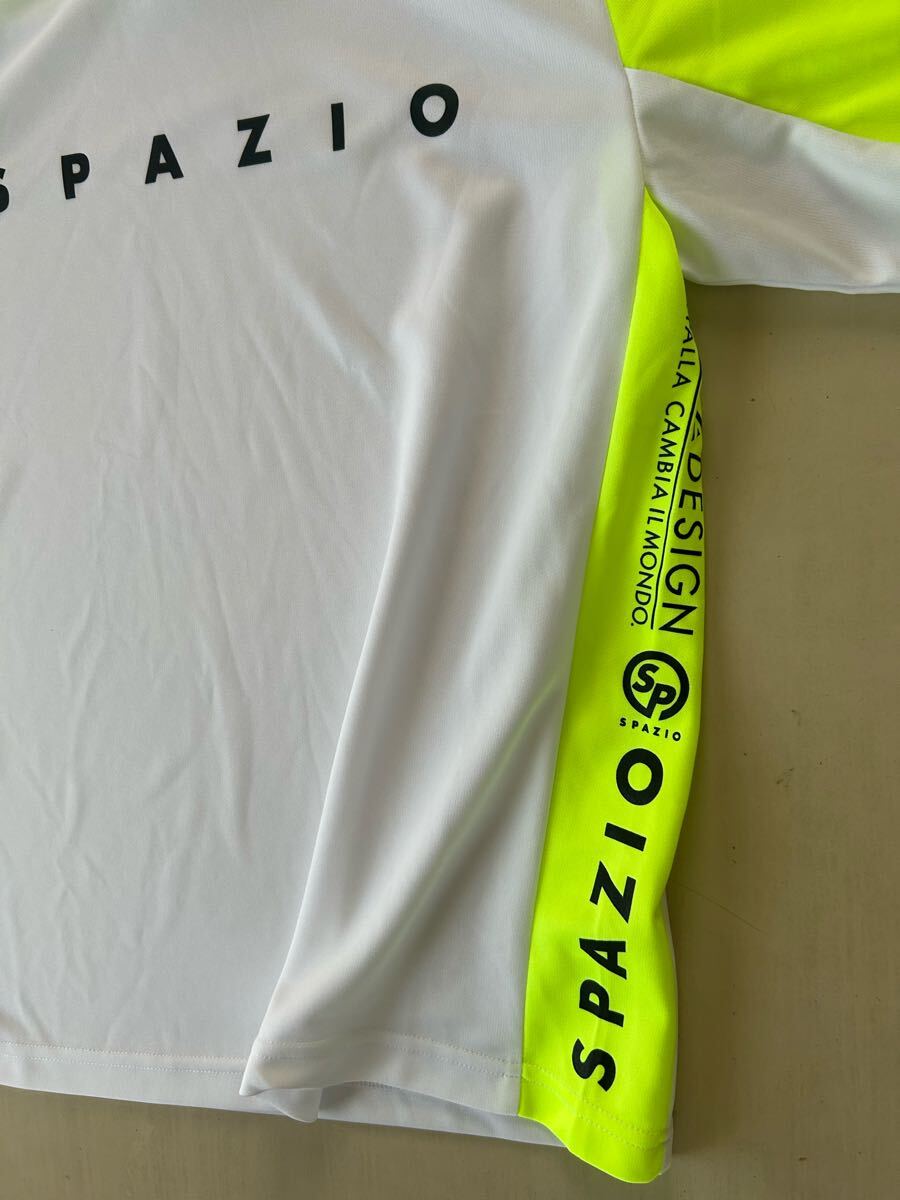 肩周りと脇のロゴ文字が特徴的な半袖プラシャツ
