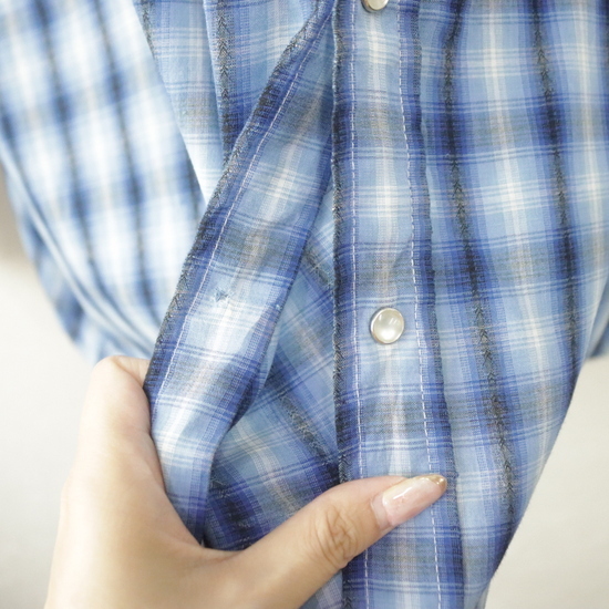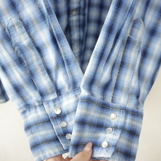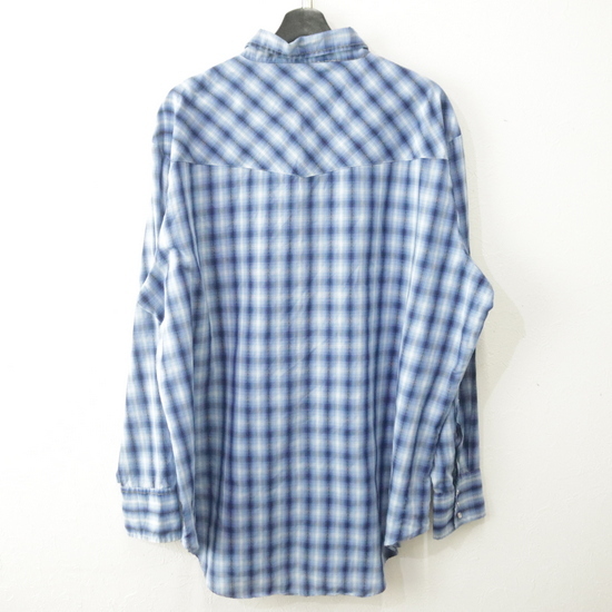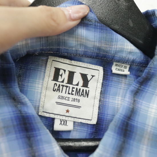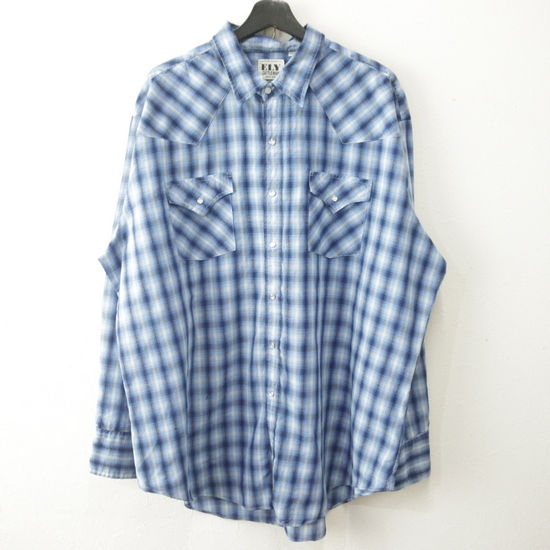 M691 2000年代製 ELY 長袖シャツ■00s 表記2XLサイズ ブルー チェック ウエスタン アメカジ ストリート 古着 激安 古着卸 90s
