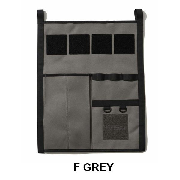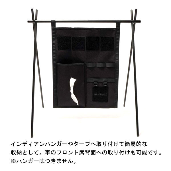 小物が収納できるウォールポケット。車ではフロント席の背面に取り付けが可能。キャンプではインディアンハンガーやタープへ取り付けることで収納力 UP 。