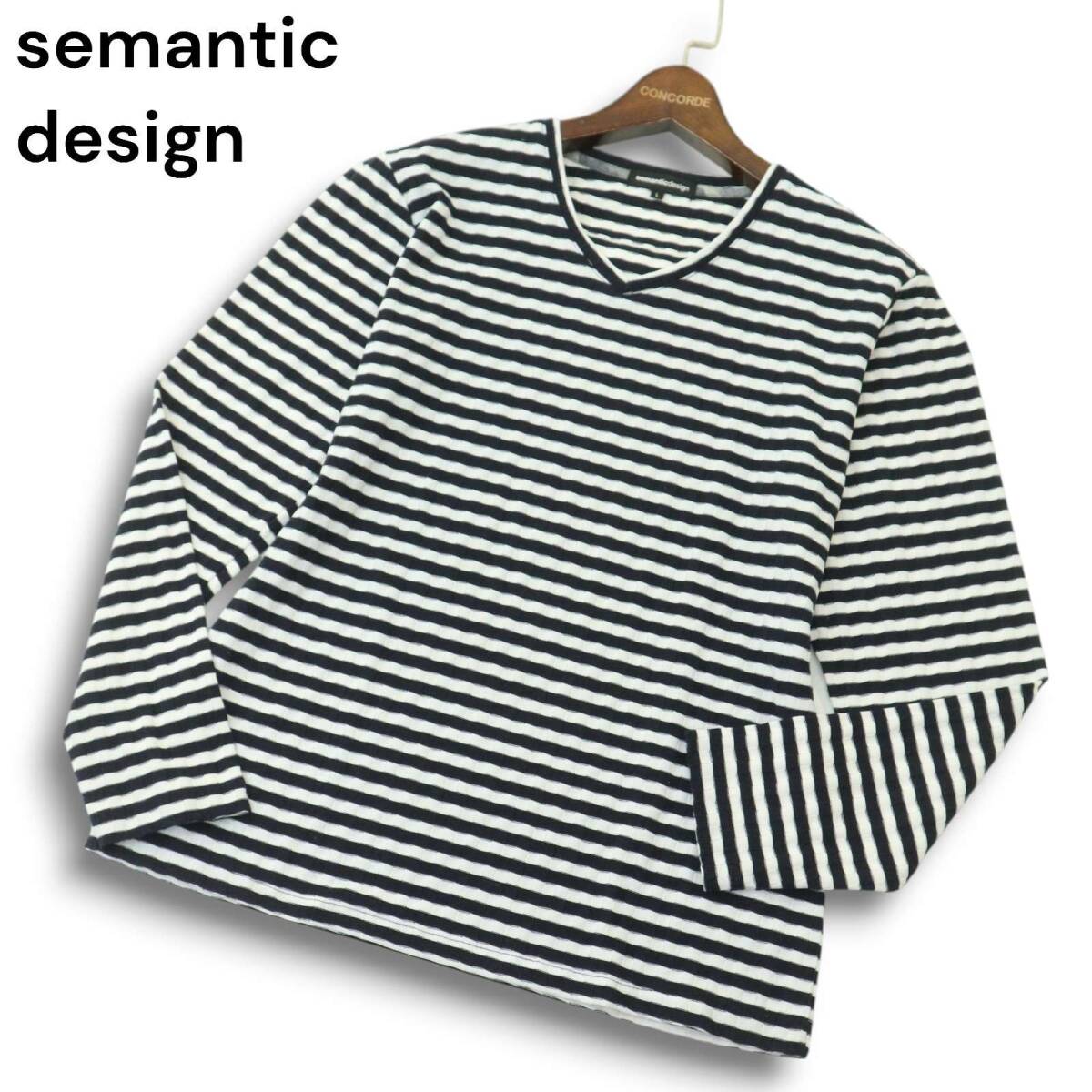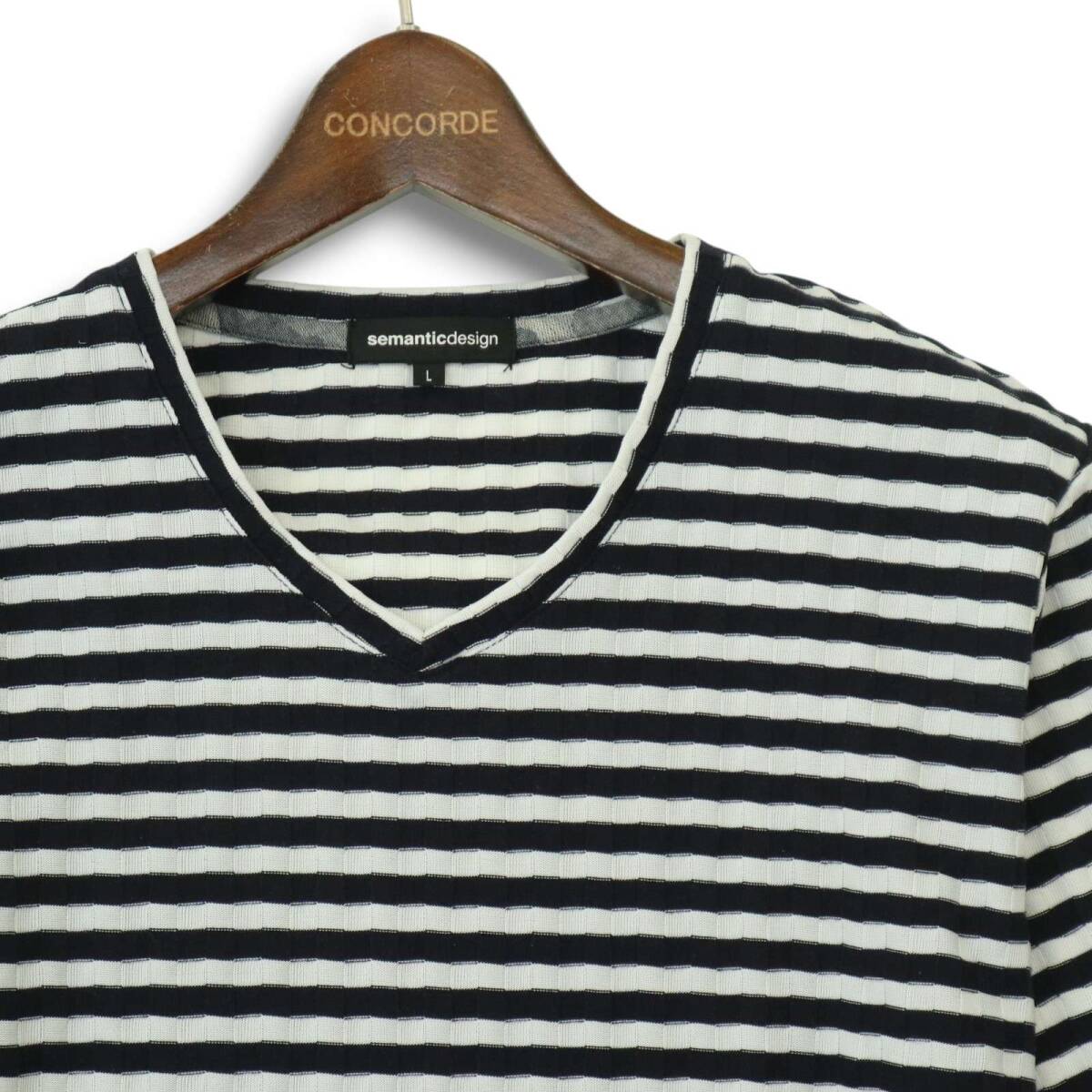 semantic design セマンティック デザイン 通年★ リンクス ボーダー カットソー 長袖 ロンTシャツ Vネック Sz.L メンズ